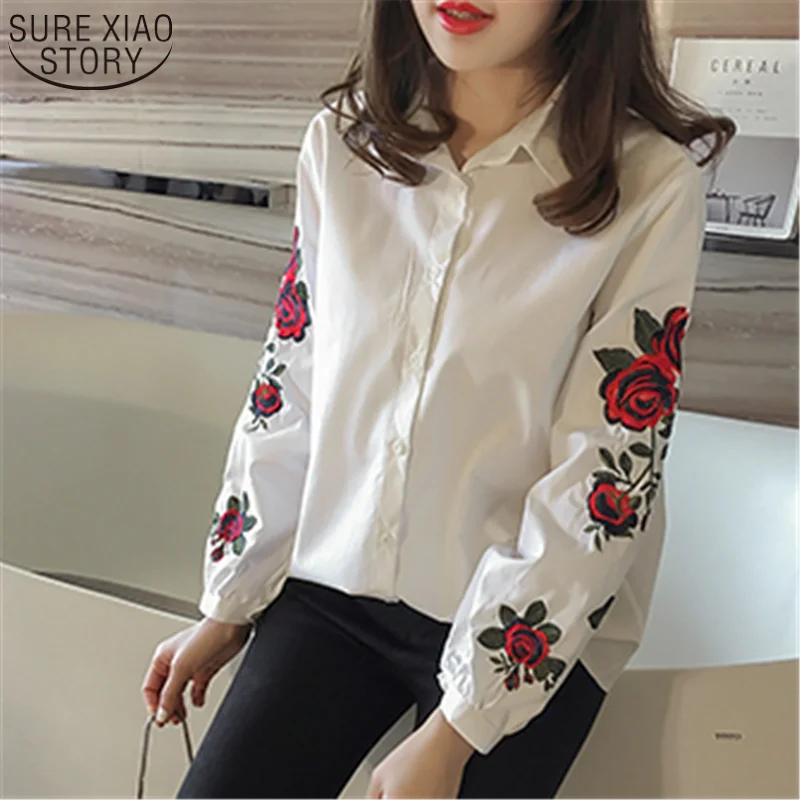 2018 Fashion Female Clothing Embroidery Blouse Shirt Cotton Korean Flower Embroidered Tops Korean Style Fresh shirt 529E 25