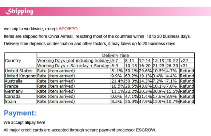 *You can submit refund requests within 15 days after the guaranteed period for delivery (45 days) has expired. You can do it by sending a message on Contact Us page