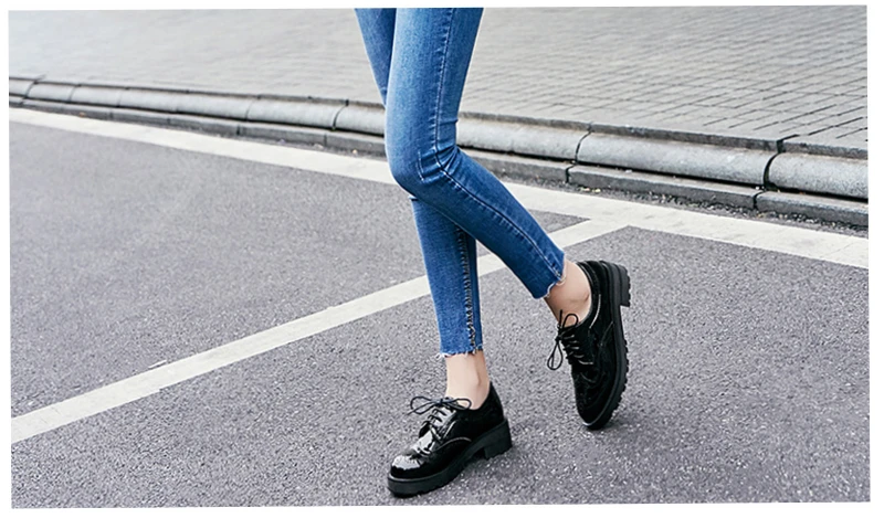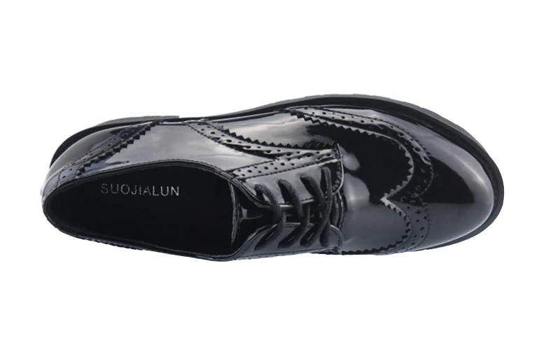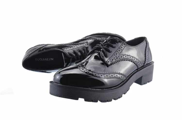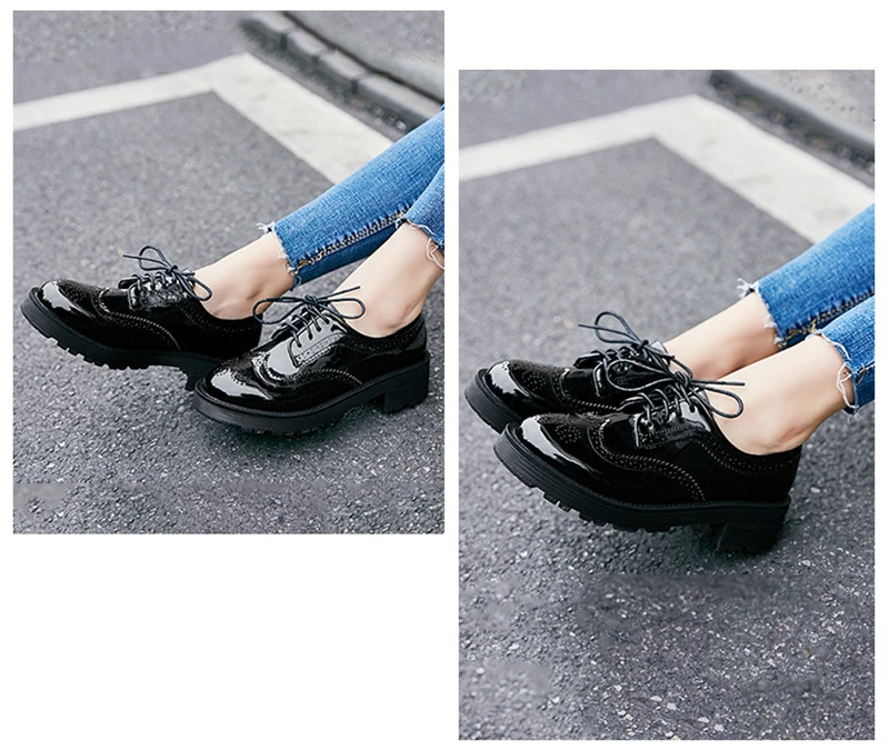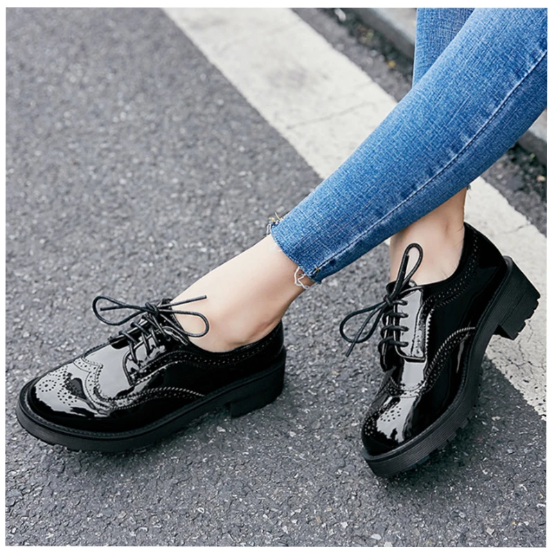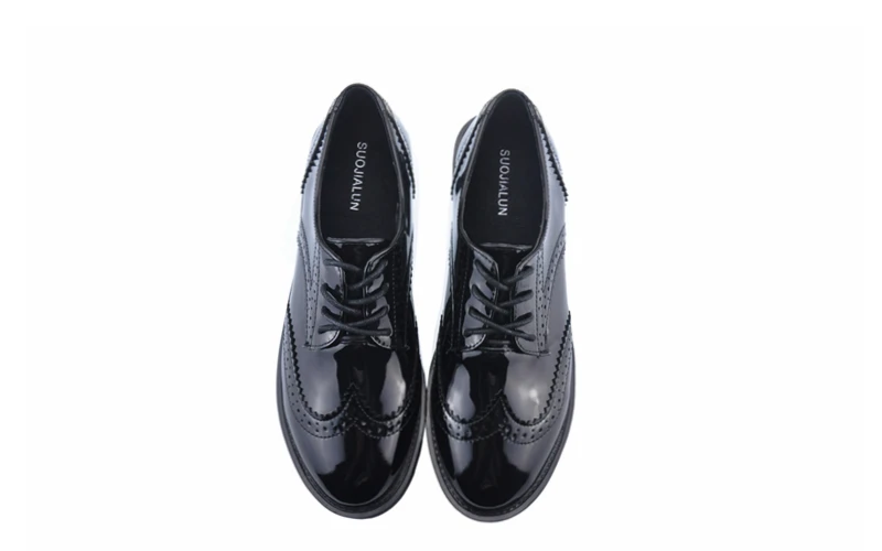 2018 Fashion Oxford Flat Shoes Women Female Oxfords Patent Leather Retro Carved Women Shoe Round Toe Britsh Style Casual Sneaker