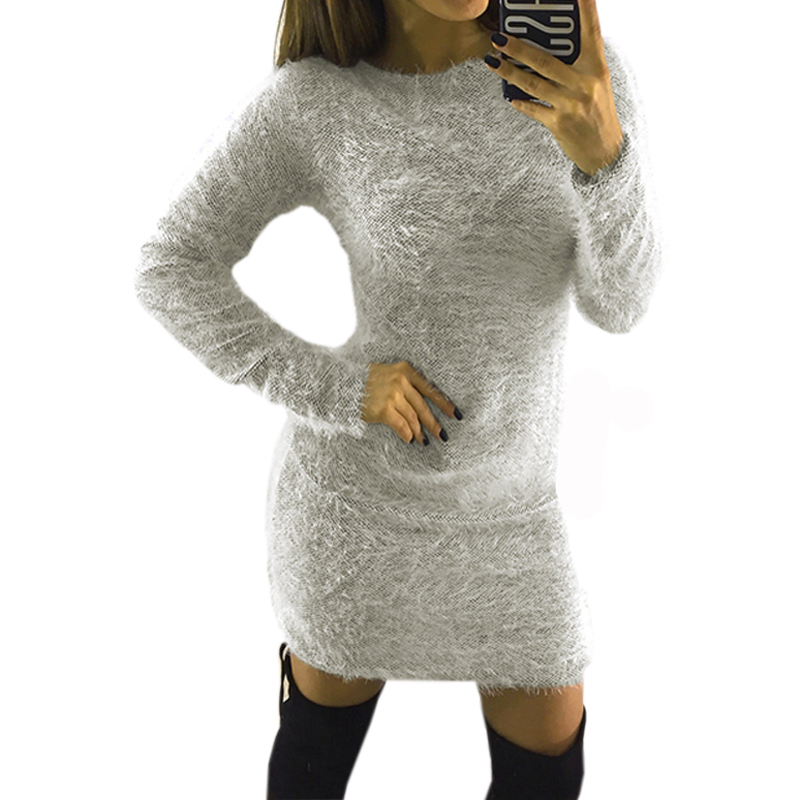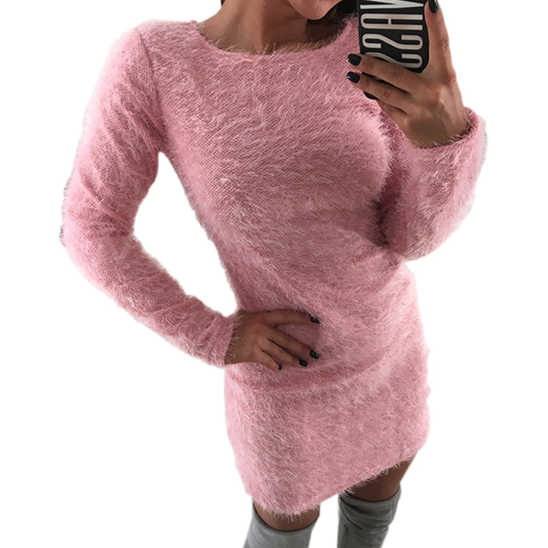 2018 Fashion Plush Sweater Dress Women Party Night Bodycon Dresses Autumn Winter Red Clothing Casual Sexy Mini Knitted Sweater