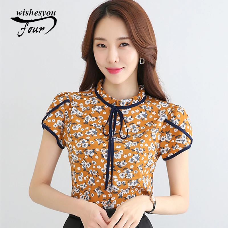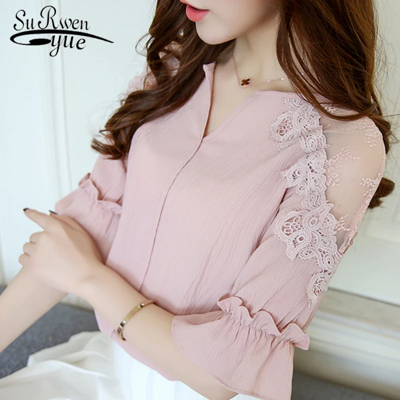 2018 fashion print chiffon blouse women shirt flare sleeve summer women tops hollow chiffon women blouses shirts blusas 0278 40