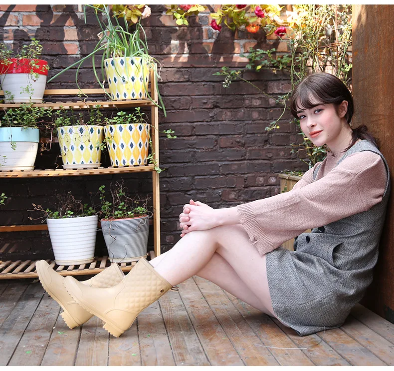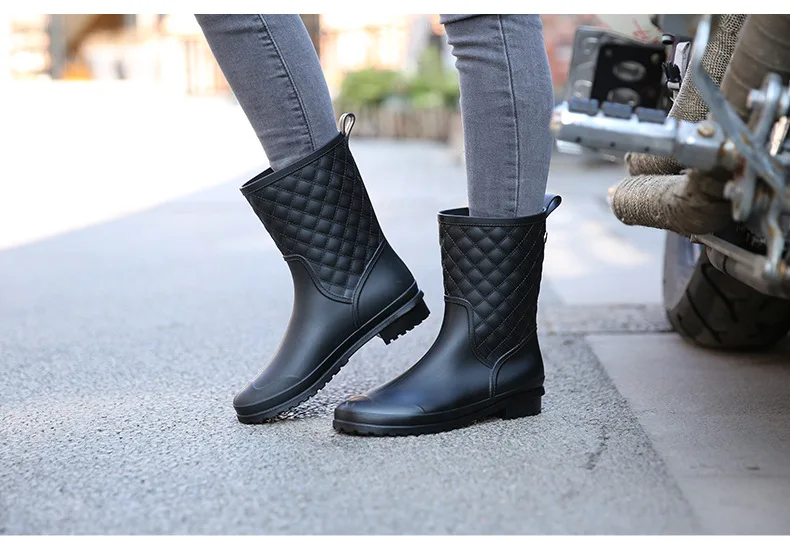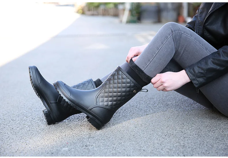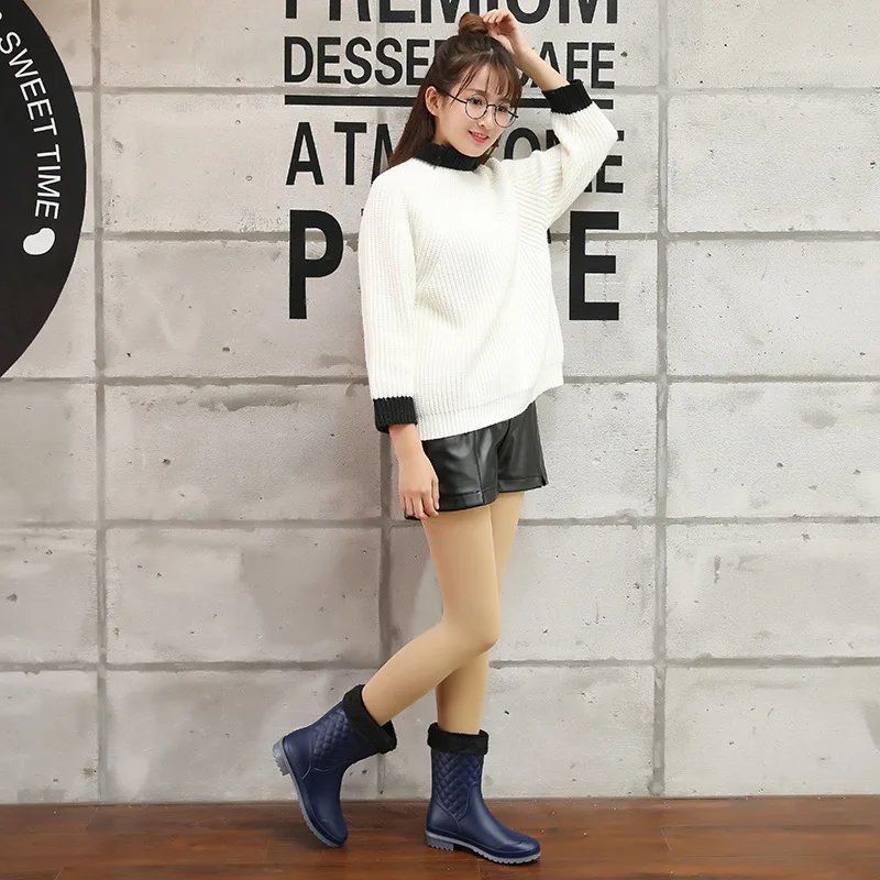 2018 fashion rubber warm shoes new plaid casual rubber shoes ladies rain boots water shoes in the tube women’s adult rain boots