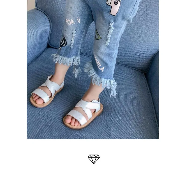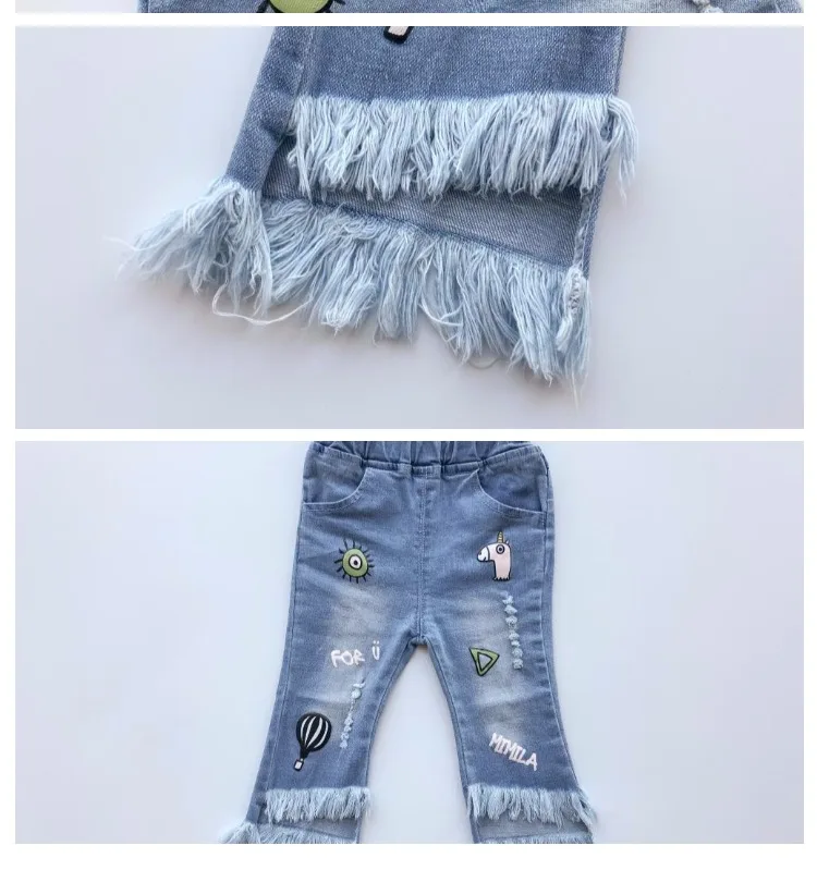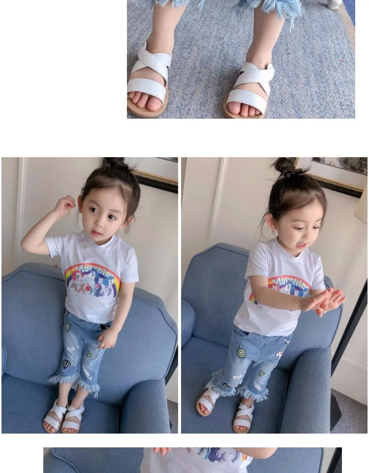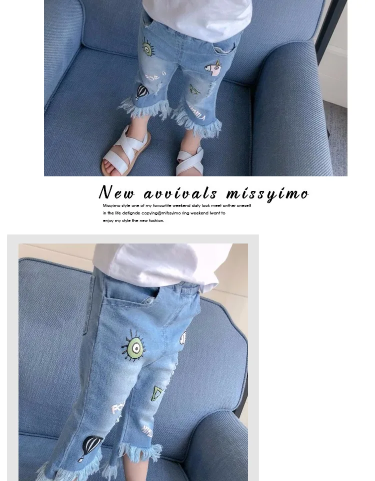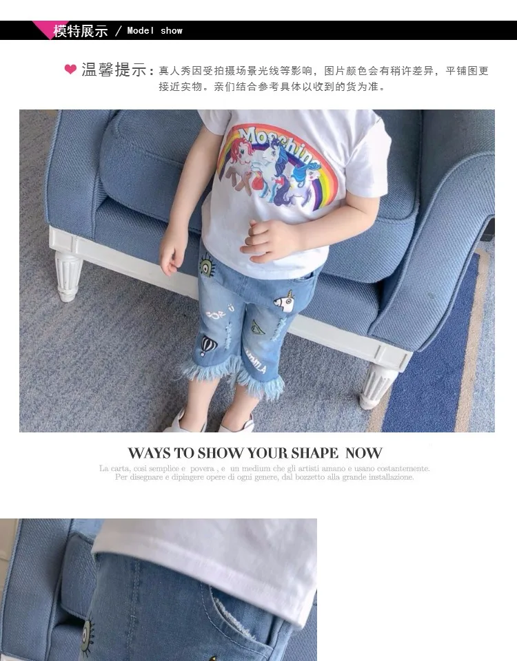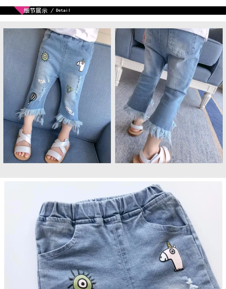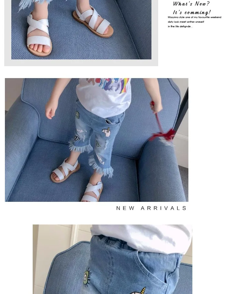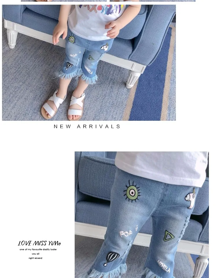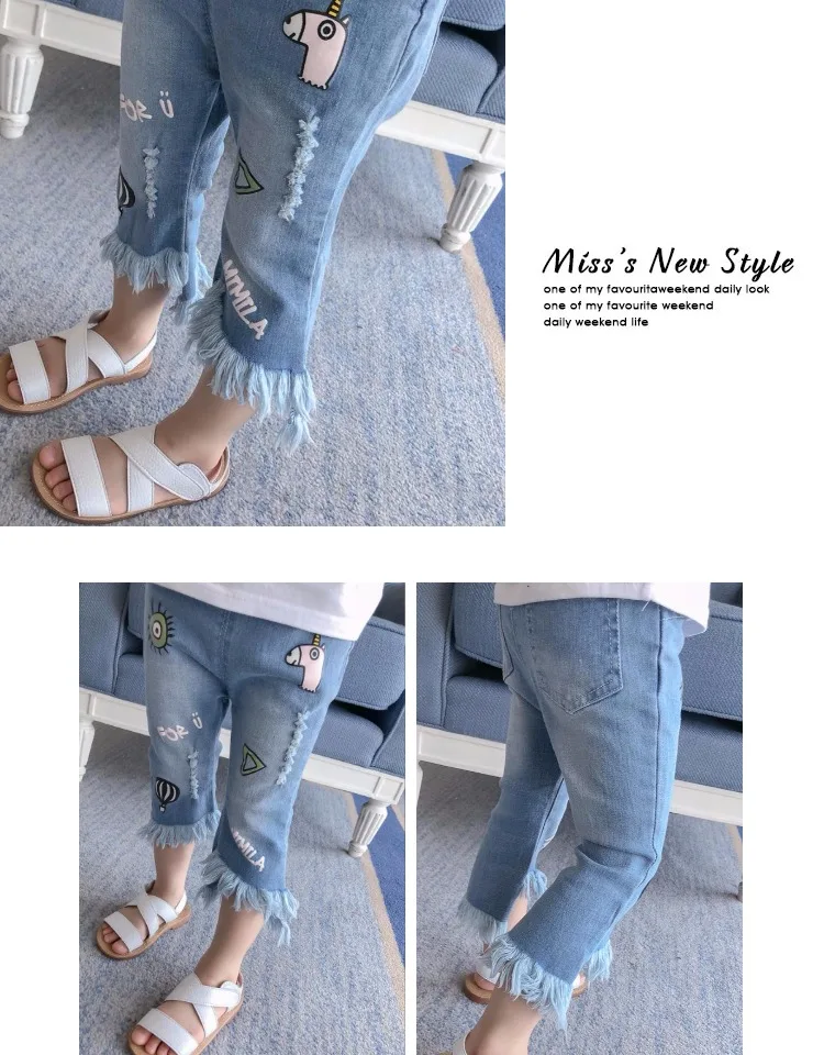 2018 fashion summer girls capri jeans kids girl Cartoon ripped kot trousers girls Capri pants clothes Denim shorts 2-7 year