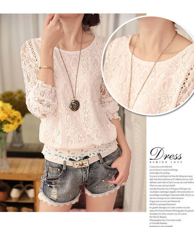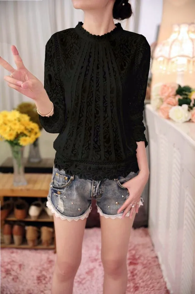 2018 fashion Summer White lace Women’s clothing Long Sleeve Chiffon women shirts blouses Blusas black Women’s Tops Blouse 51C 30