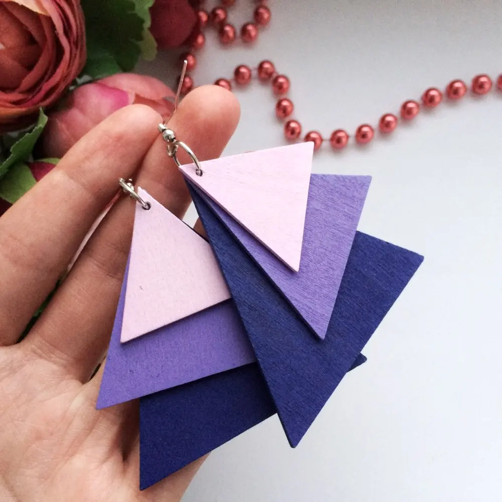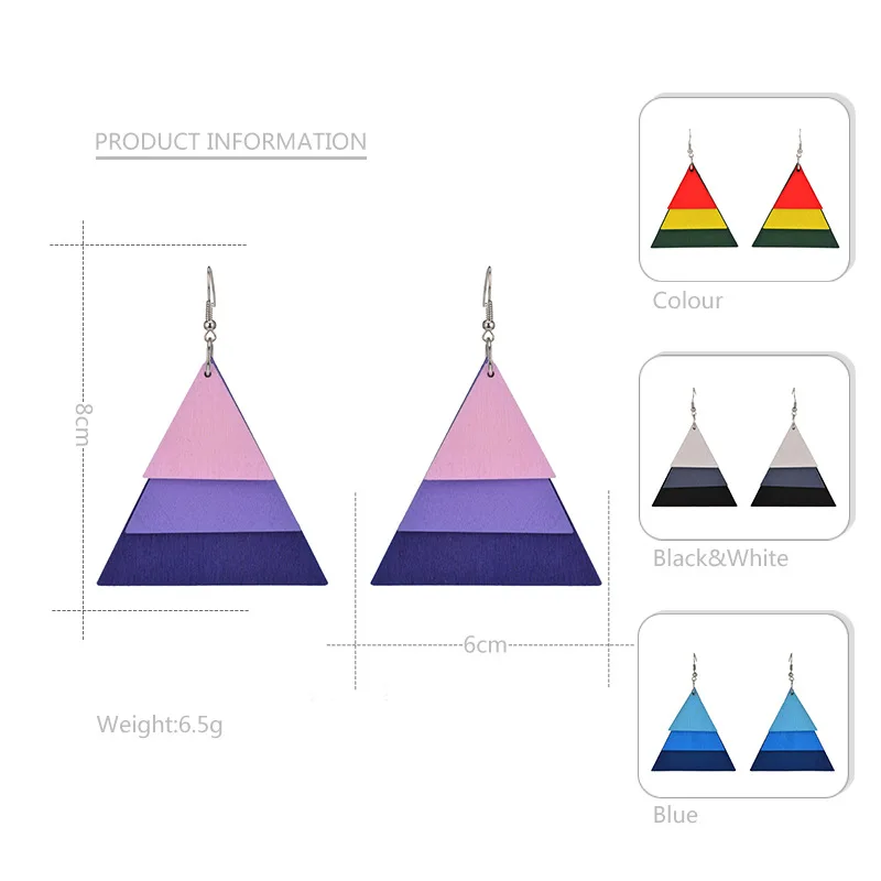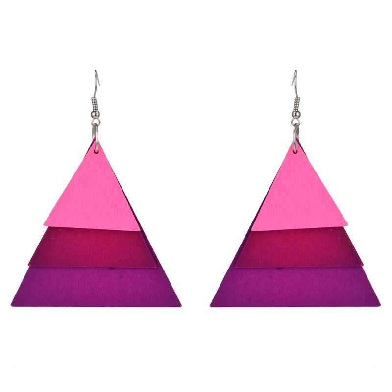 2018 Fashion Temperament Wood Drop Earrings 3 Colors 3 Layers Geometric Triangle Exquisite Dangle Earrings For Women Party