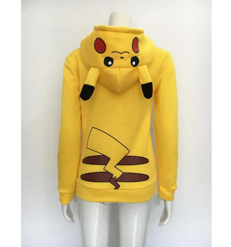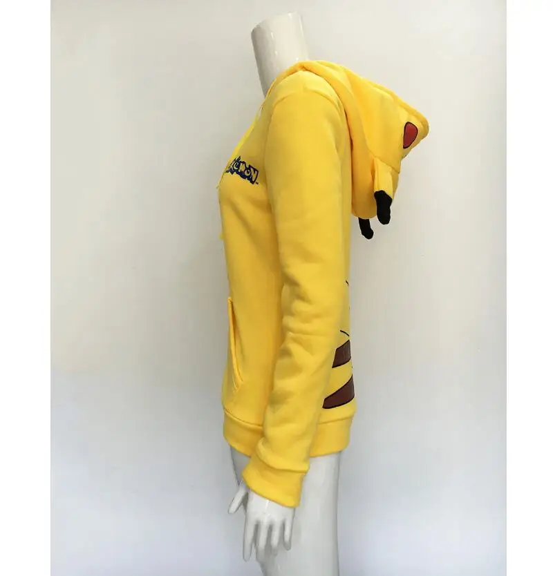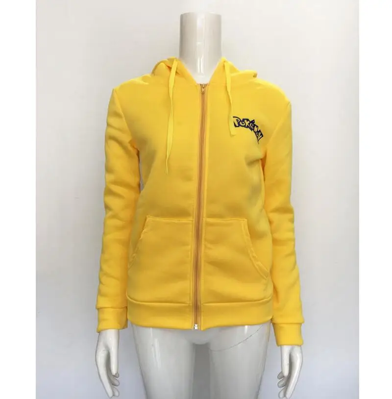 2018 Fashion Women Jacket Yellow Solid Pokemon Pikachu Printed Costume Tail Zip Totoro Hoodie Sweatshirt Casual Sudaderas Mujer