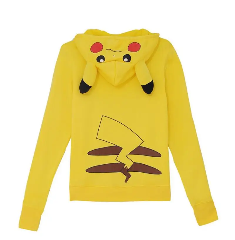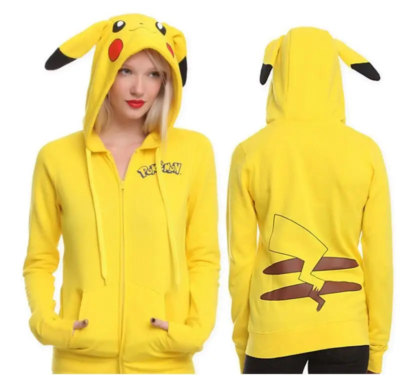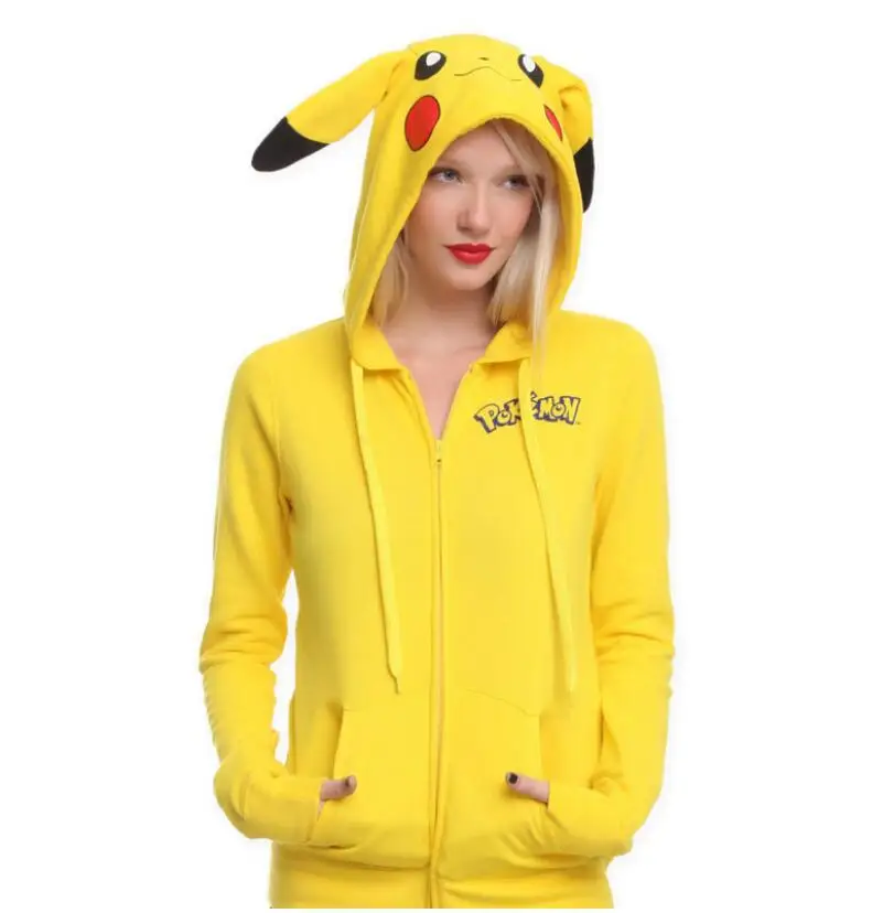 2018 Fashion Women Jacket Yellow Solid Pokemon Pikachu Printed Costume Tail Zip Totoro Hoodie Sweatshirt Casual Sudaderas Mujer