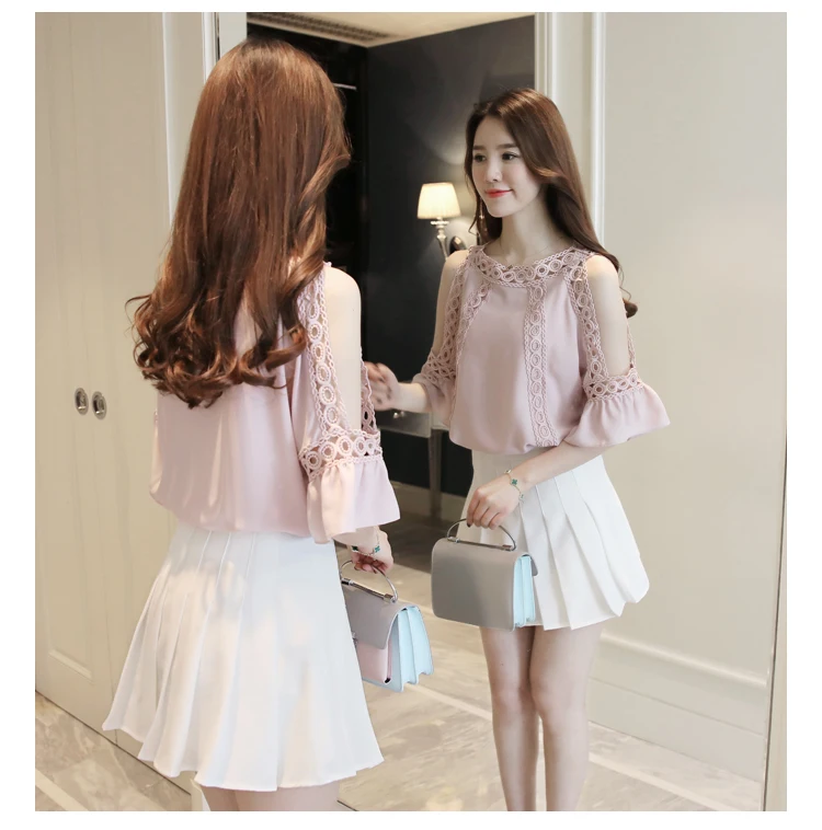2018 Fashion Women’s Lace O-Neck Blue Elegance Lace Elengace Shirts Casual Slim Tops Women Clothings Spring Blouses Hots T83752L