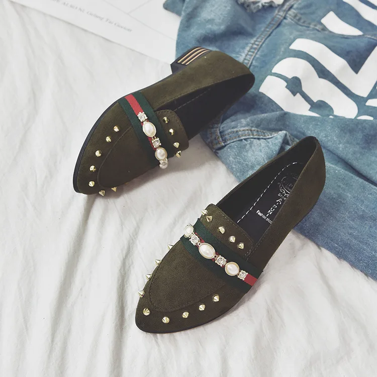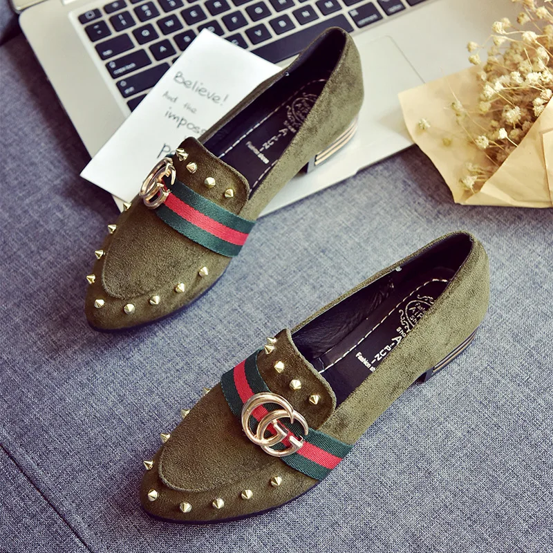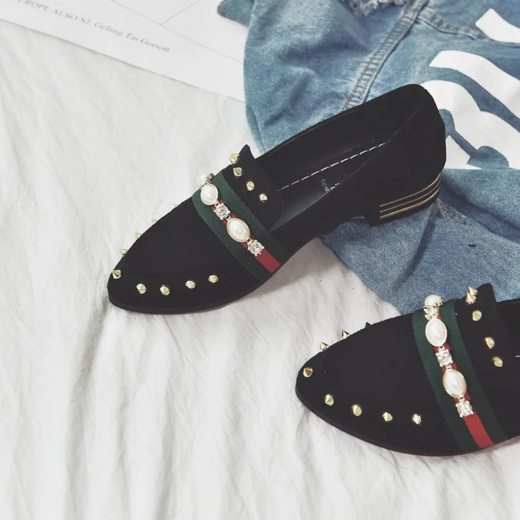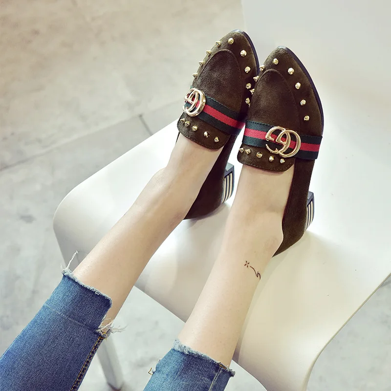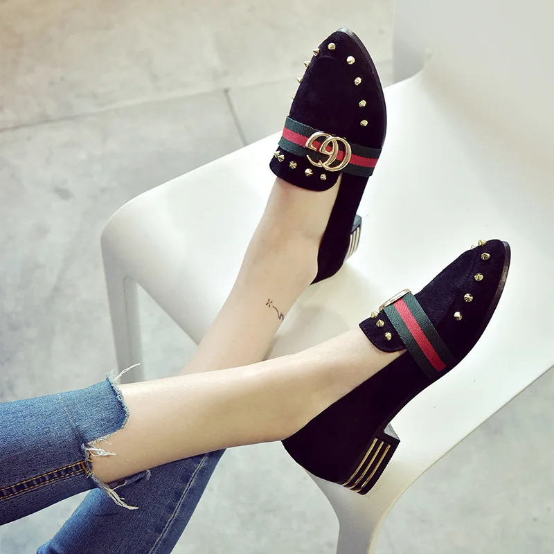 2018 free freight spring and autumn new style women’s shoes with pointed toe cover and shallow rivet single shoes
