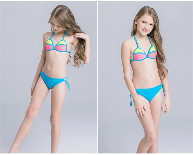 2018 Girl Kid Halter Micro Bikini Set Beach Wear Swimwear Swimsuit Swim Bathing Suit Children Cute Sexy Bather Pool Teens Tanga