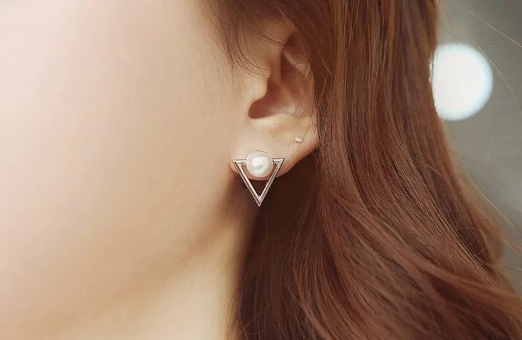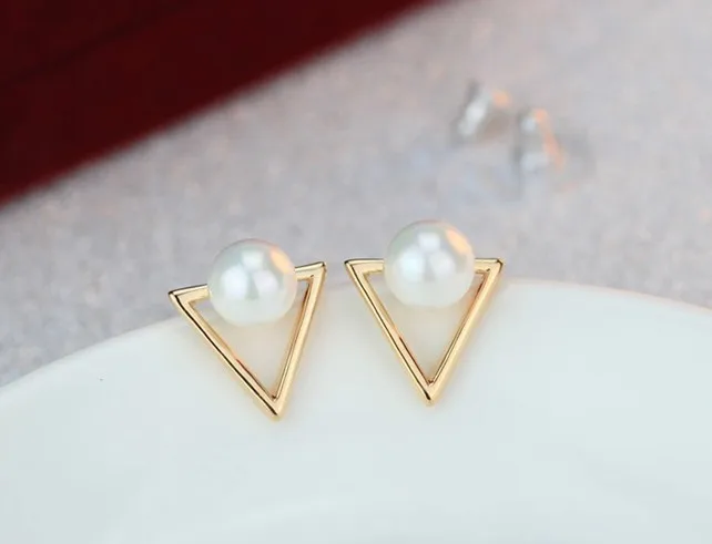 2018 Girl Simple Studs Earings Fashion Jewelry Triangle Pearl Earrings Brincos For Women Gold Perle Boucles D’oreilles Femmes