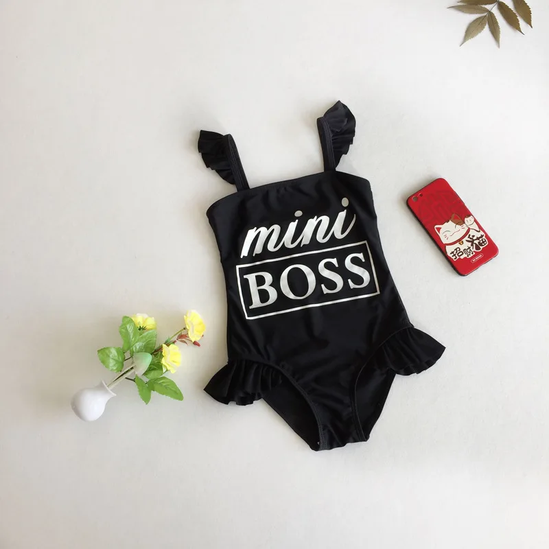 2018 Girls Swimsuits Mini Boss Print Children’s Swimwear Surf Clothing Diving Suit Miraculous Ladybug Swimwear Kids Baby Black