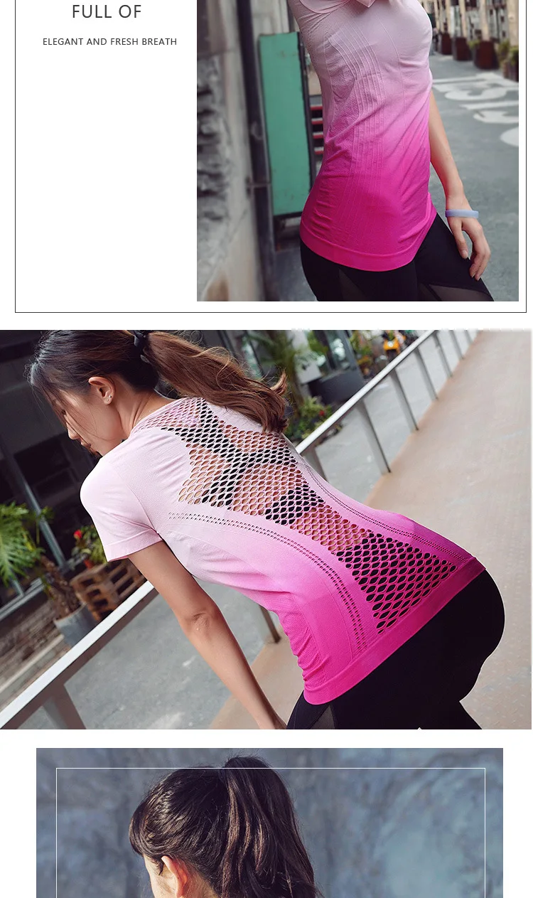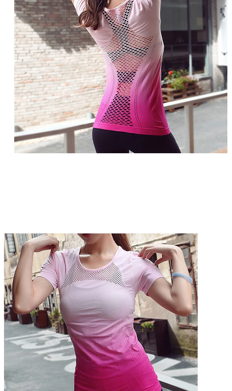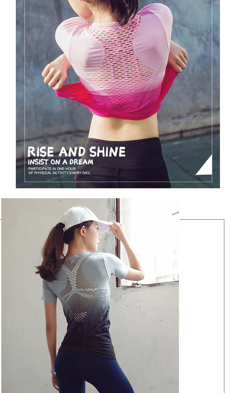 2018 Gym Compression T-shirts Women’s Sport Dry Quick Running Short Sleeve Breathable wicking T-shirt Fitness Tees yoga tops h27