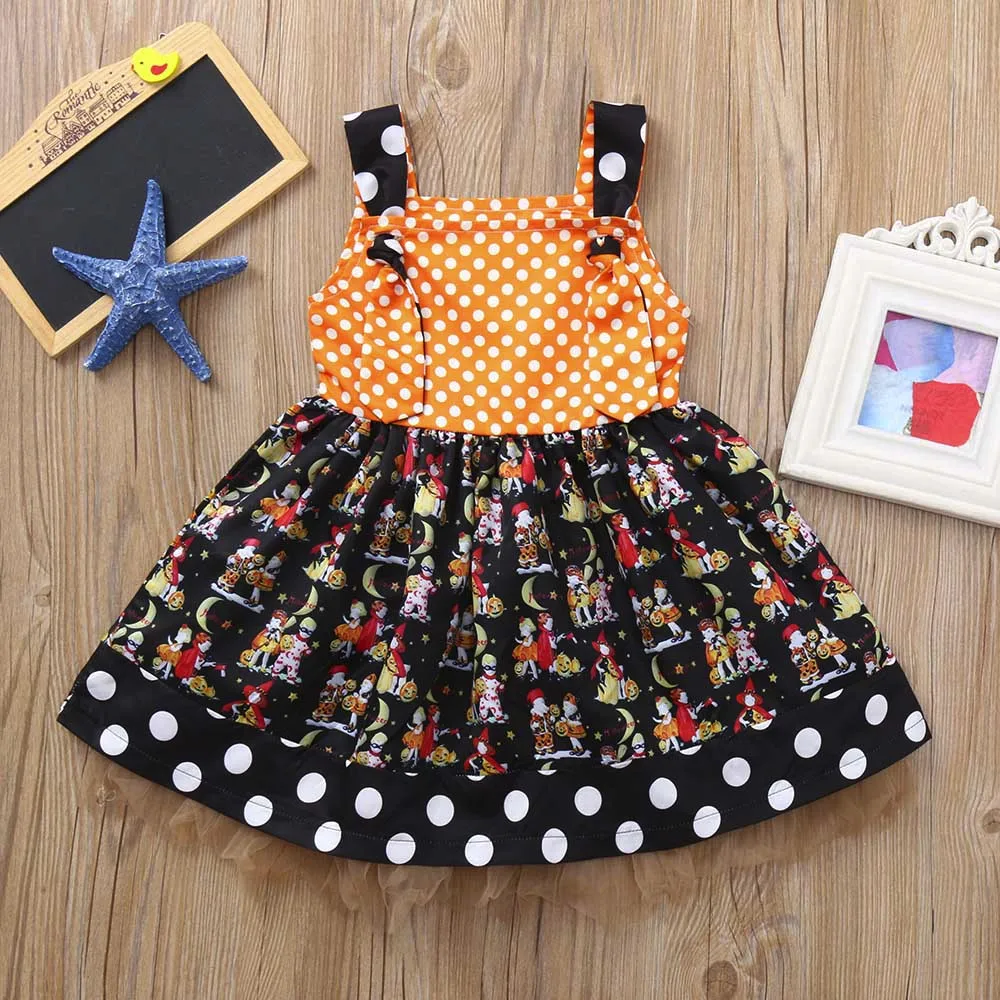 2018 Halloween Infant Toddler baby girl clothing Pumpkin Bow Party Dress Clothes Dresses cute newborn baby girl clothes