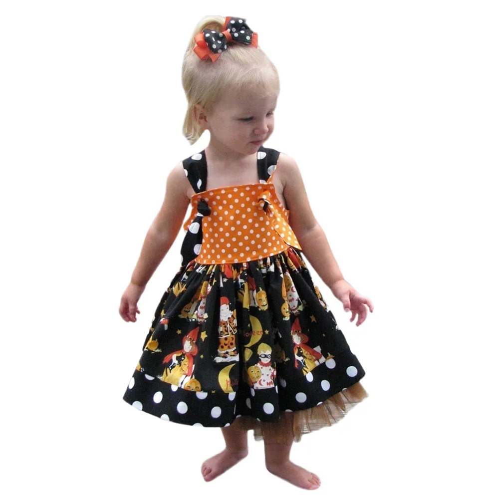 Infant Toddler Baby Girls Pumpkin Bow Party Dress Halloween Clothes Dresses