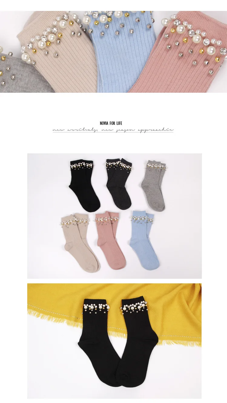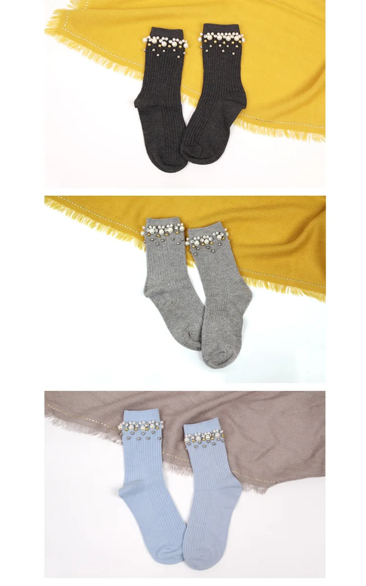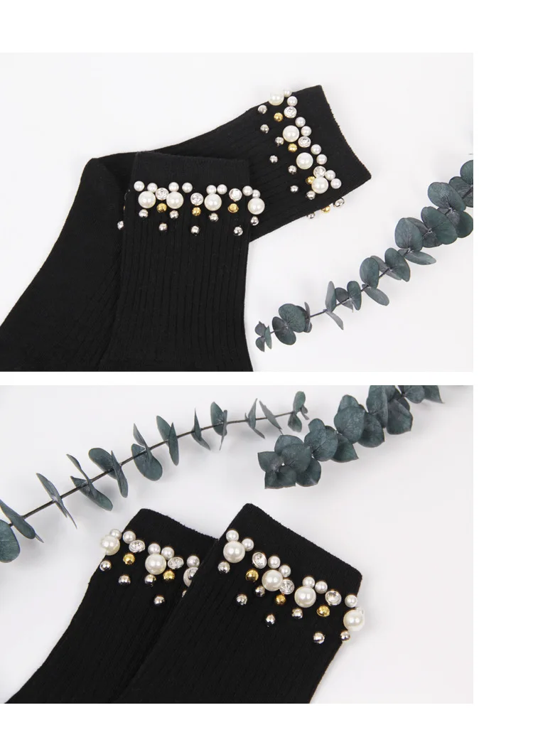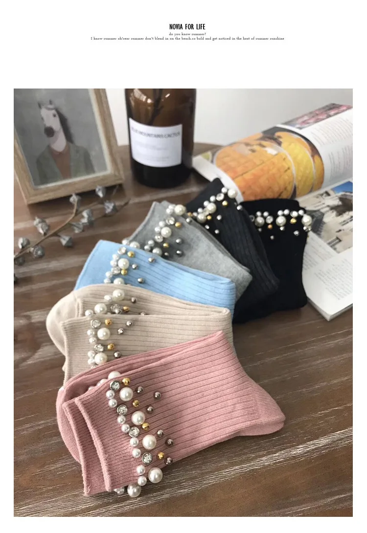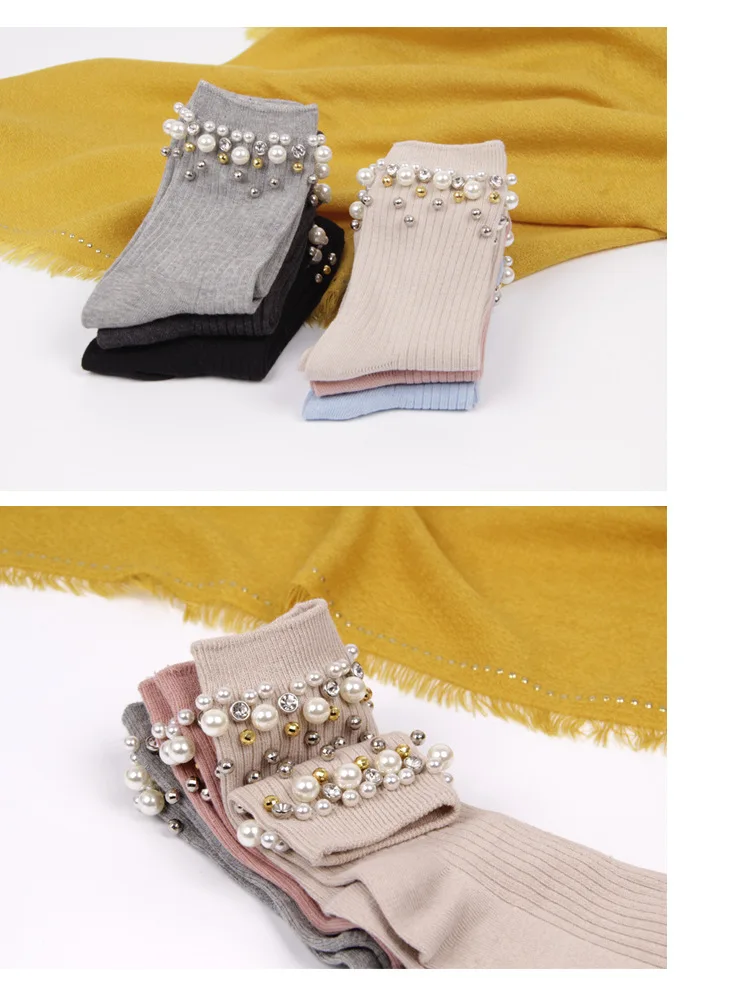 2018 handmade Rhinestone pearls cotton socks women autumn and winter wholesale price 6colors