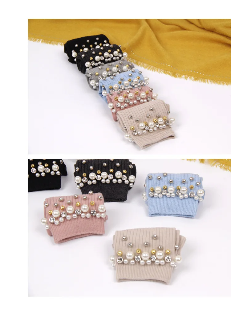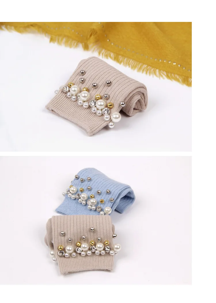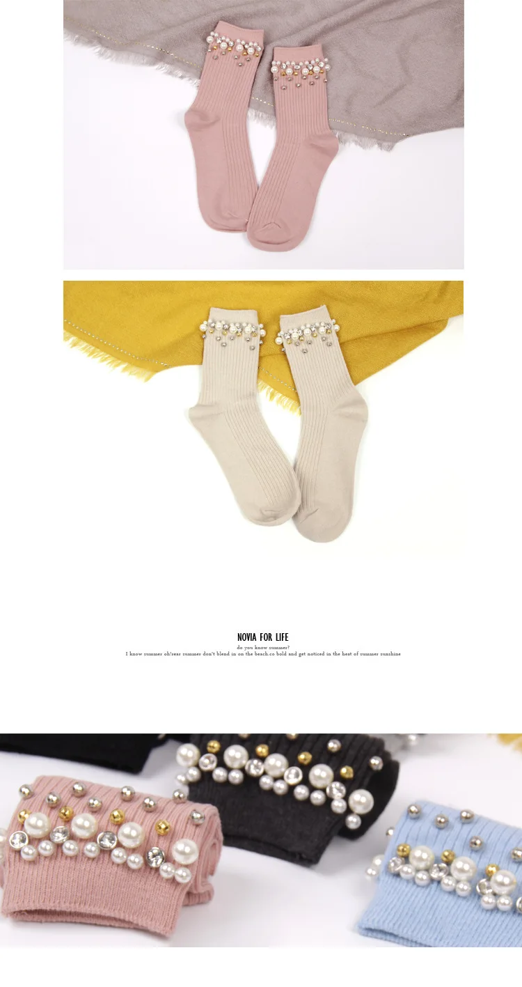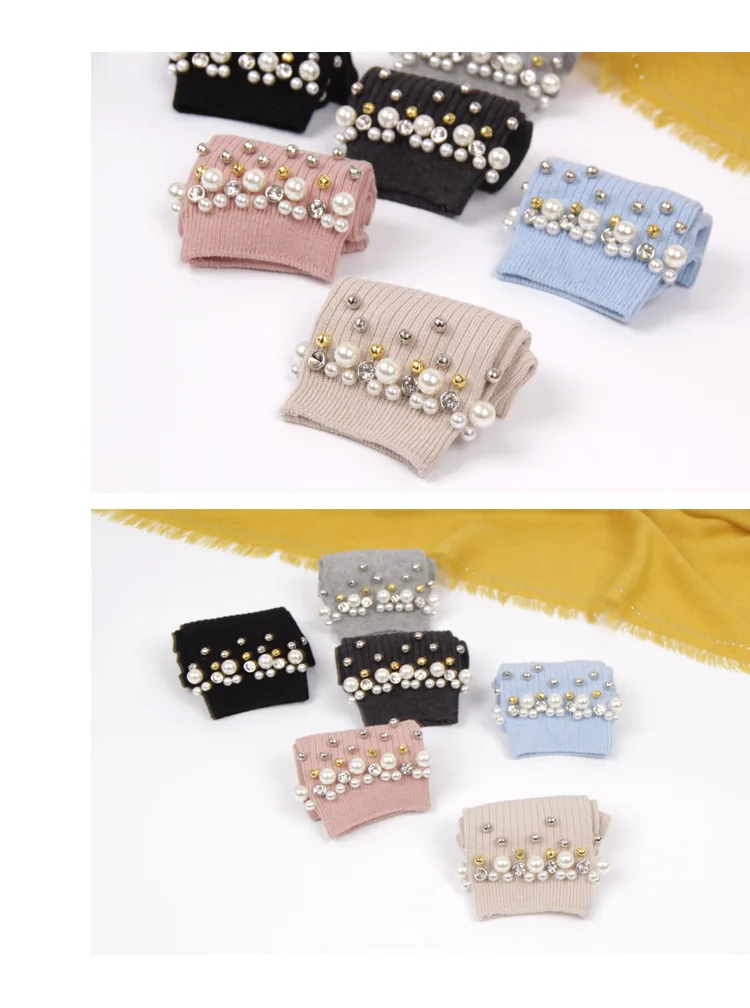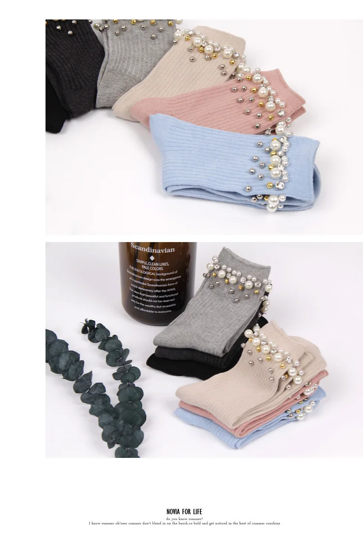 2018 handmade Rhinestone pearls cotton socks women autumn and winter wholesale price 6colors