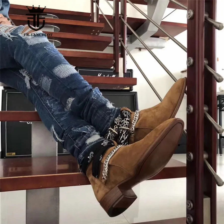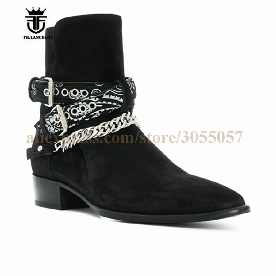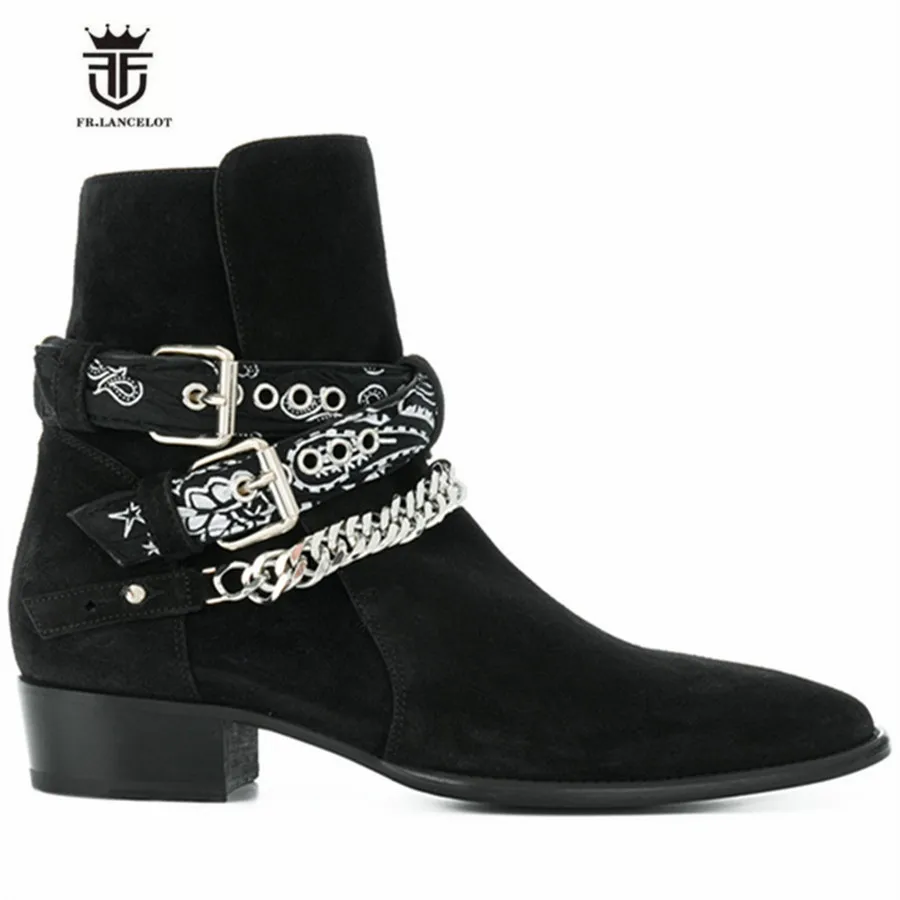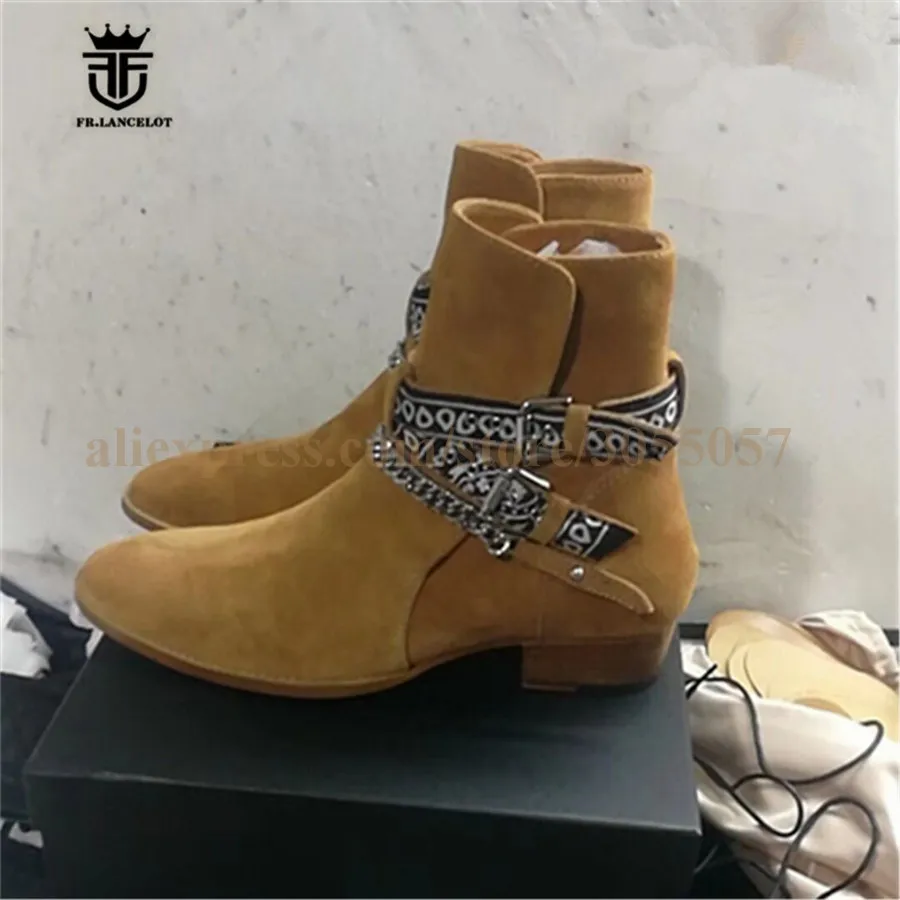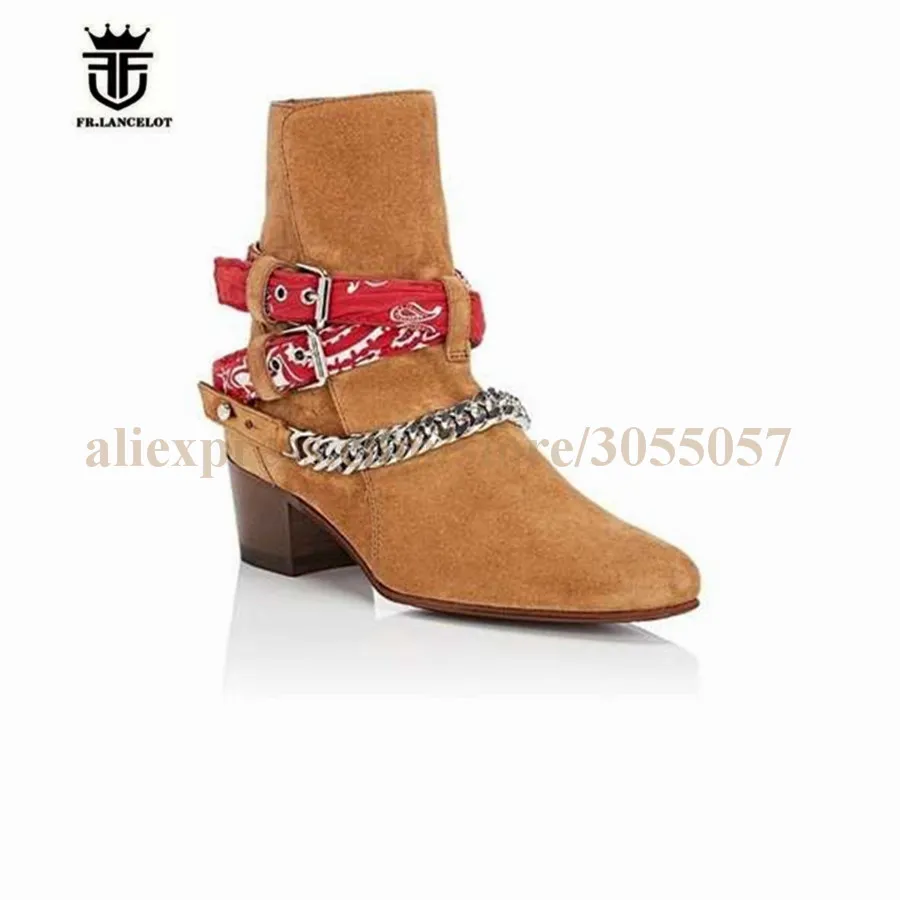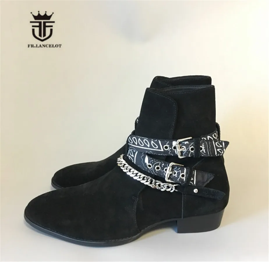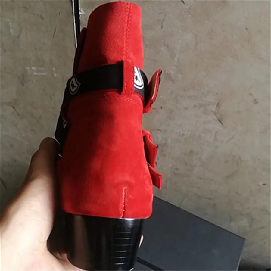 2018 High End Exclusive Chain Buckle Strap Graffiti Cloth Sexy Boots Red Suede Catwalk T show Luxury Men Boots