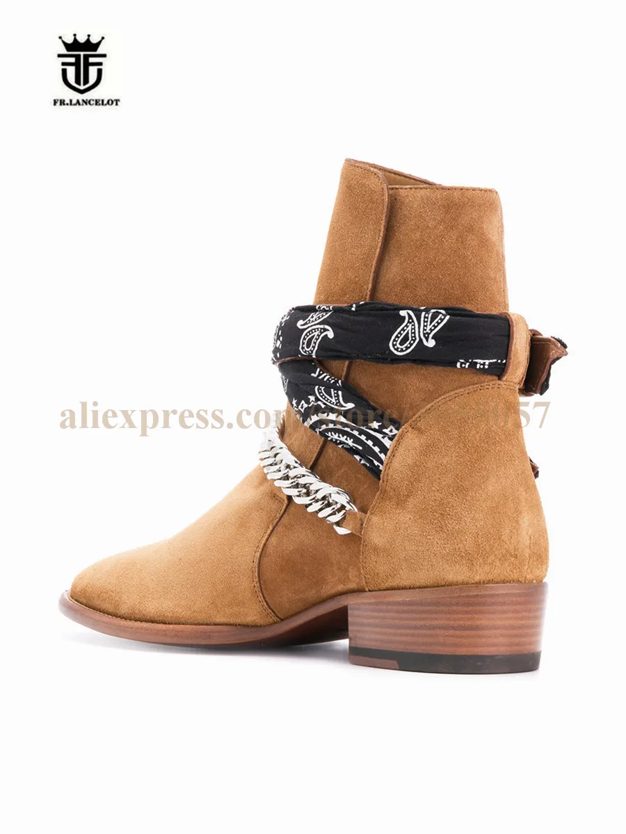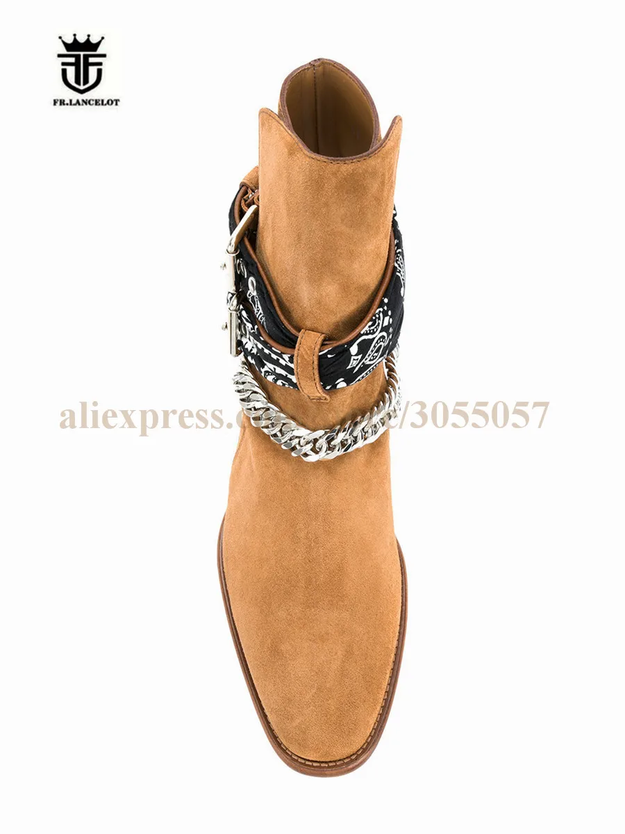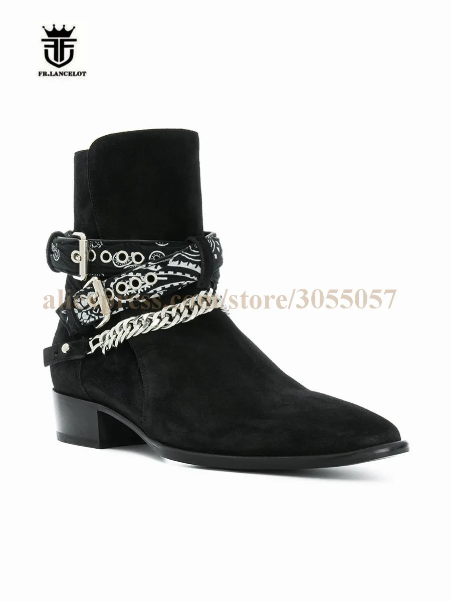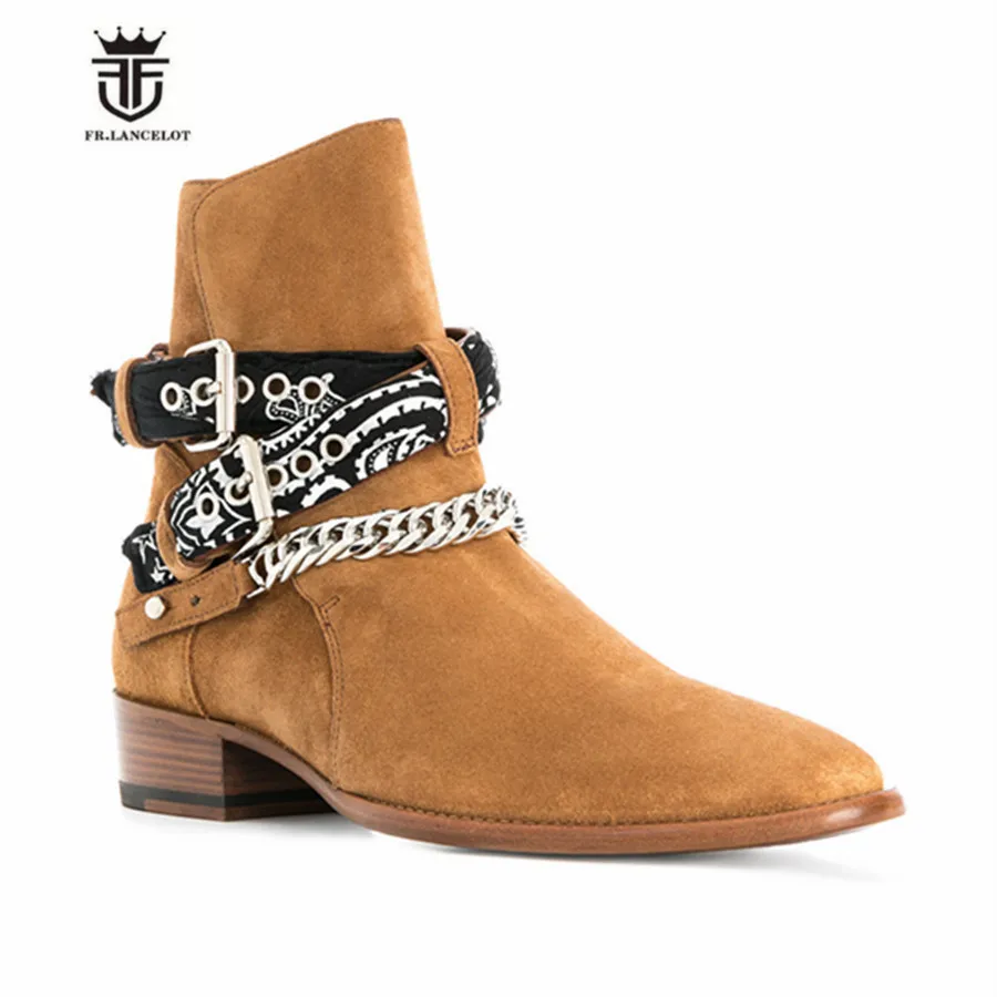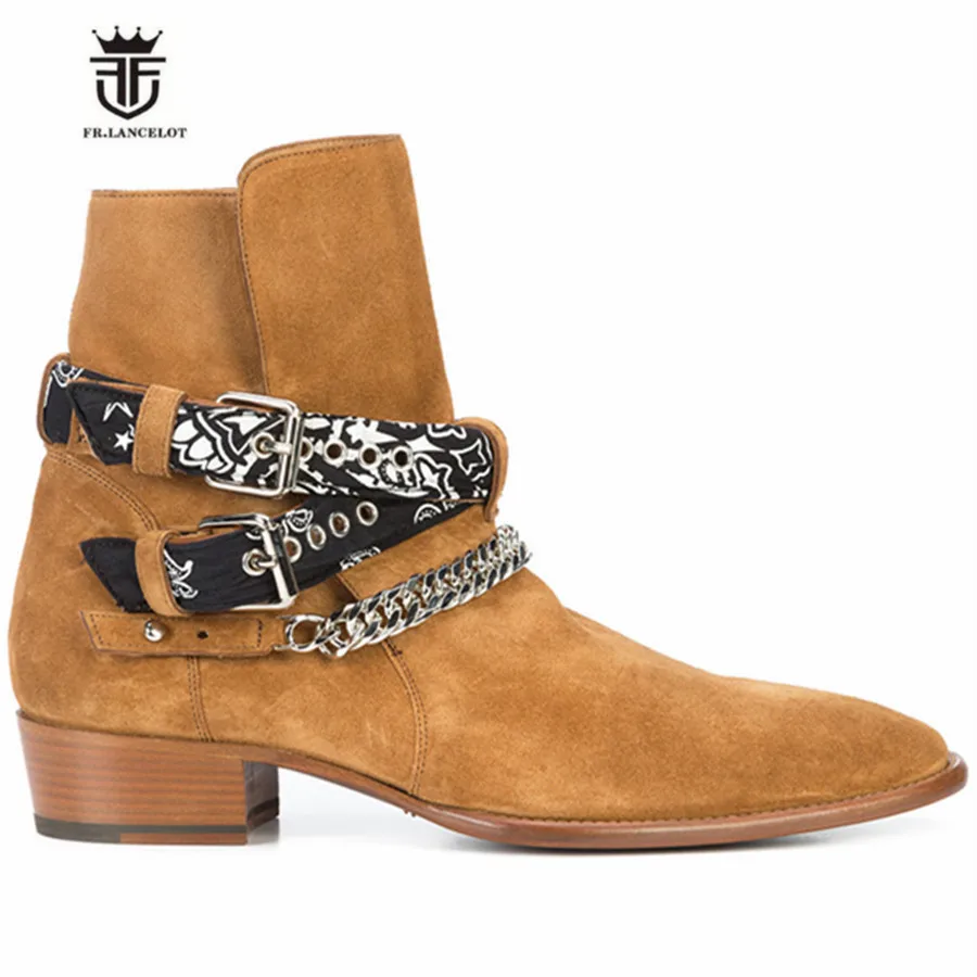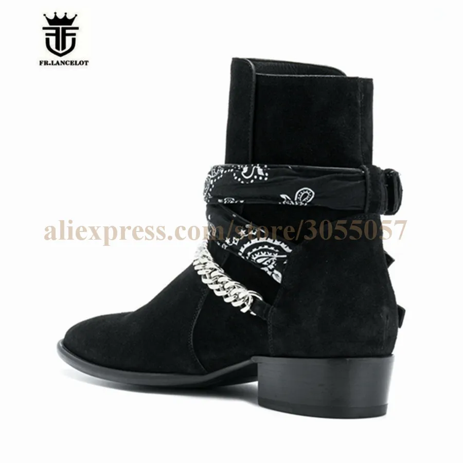 2018 High End Exclusive Chain Buckle Strap Graffiti Cloth Sexy Boots Red Suede Catwalk T show Luxury Men Boots