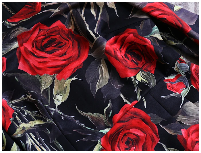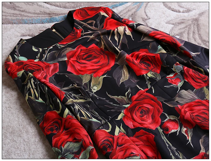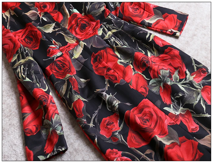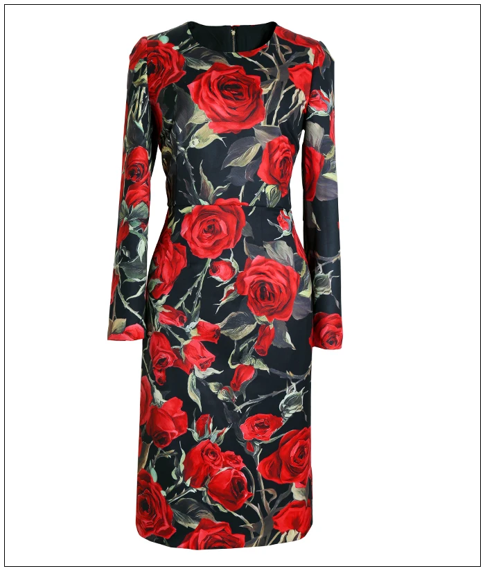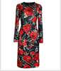 2018 High Quality Autumn Winter Designer Rose Flower Printing Long Sleeve Knee-length Dress 2018 New Slim Waist Pencil Dress