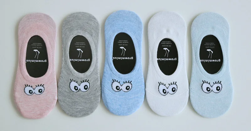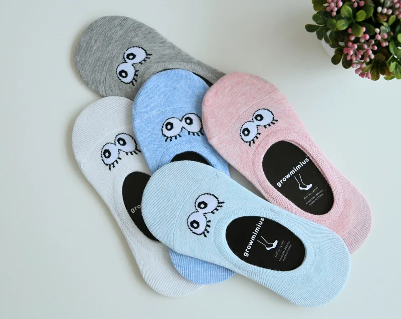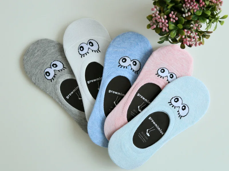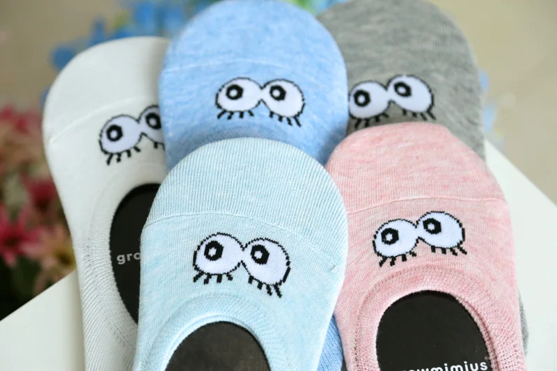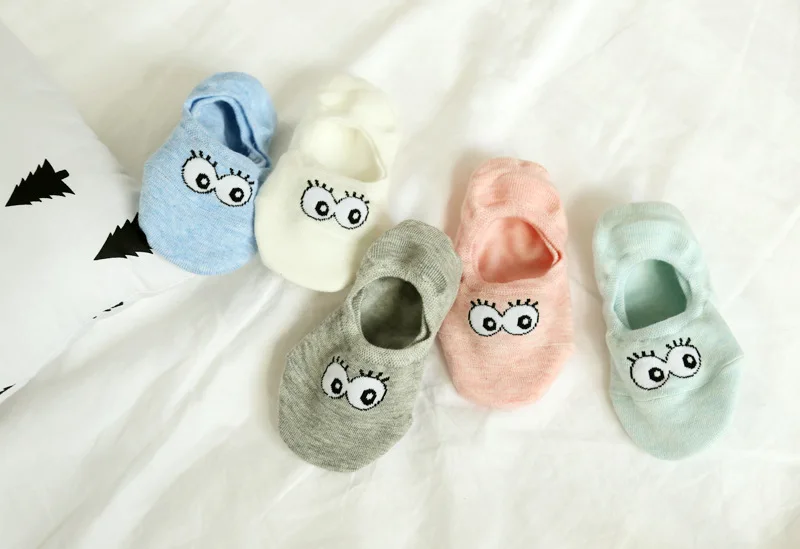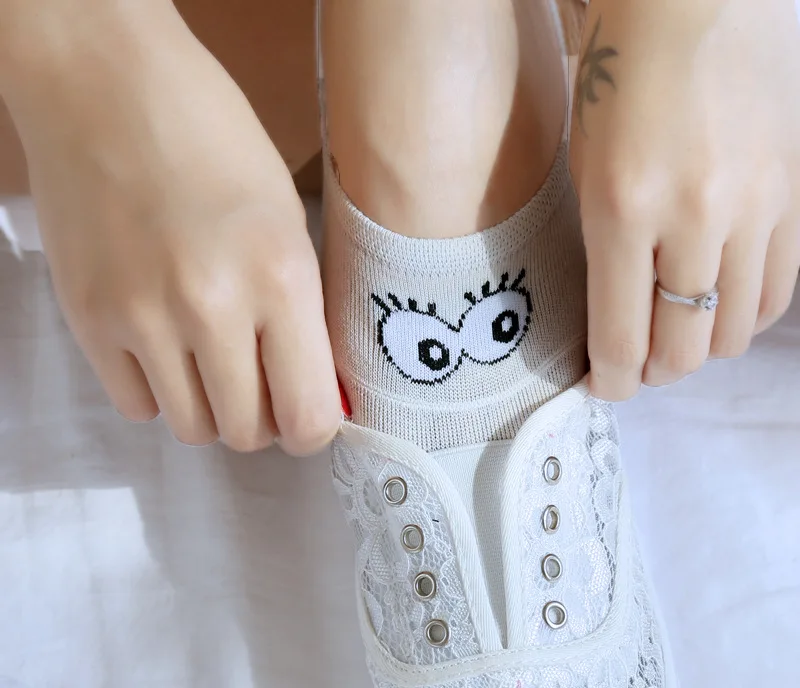 2018 High Quality Funny Happy Socks Cute Big Eyes Low Cut Ankle Boat Sock Breathable Cotton Women Socks Spring Summer 5Pairs/lot