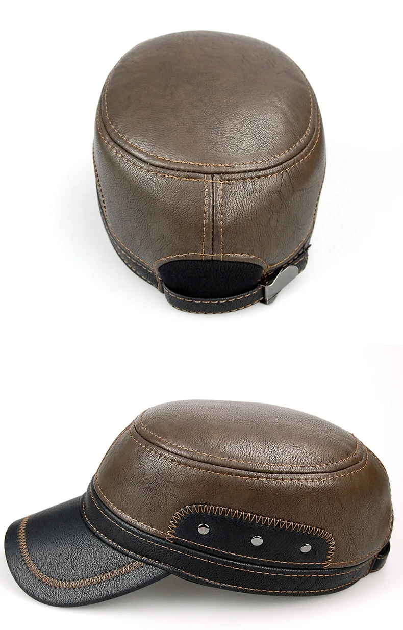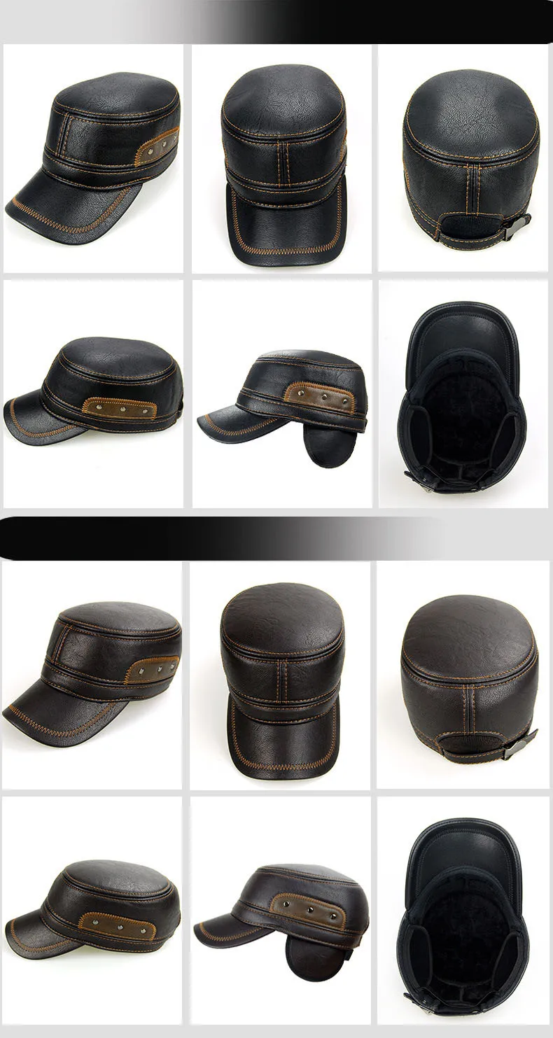 2018 High quality middle aged men’s baseball cap leather adult Patchwork adjustable flatcap autumn winter hats