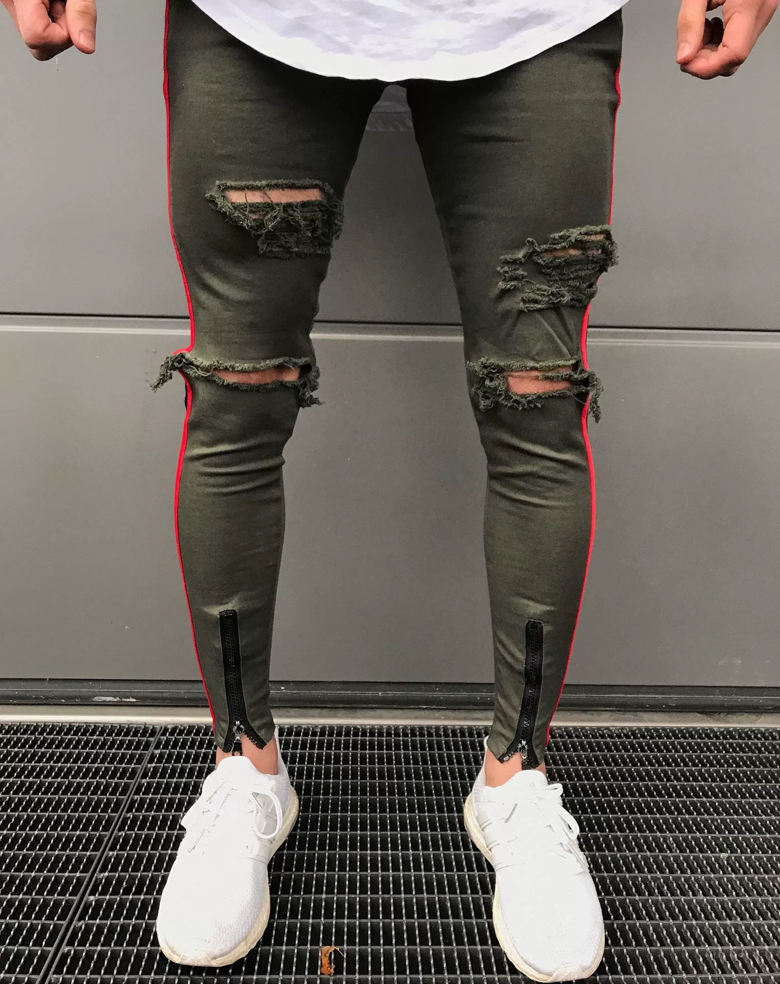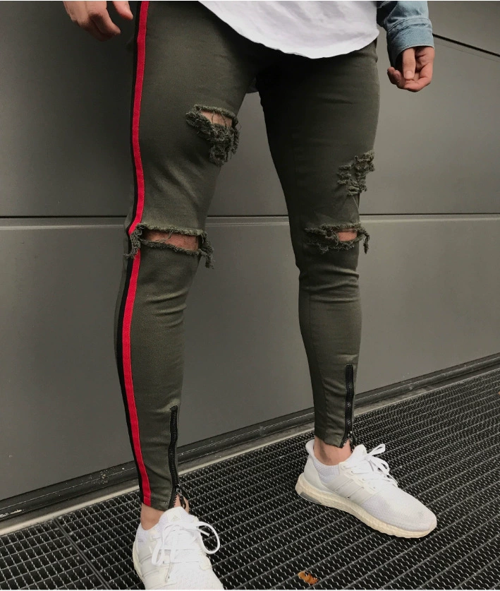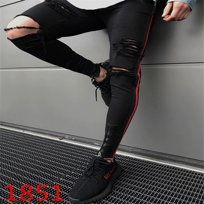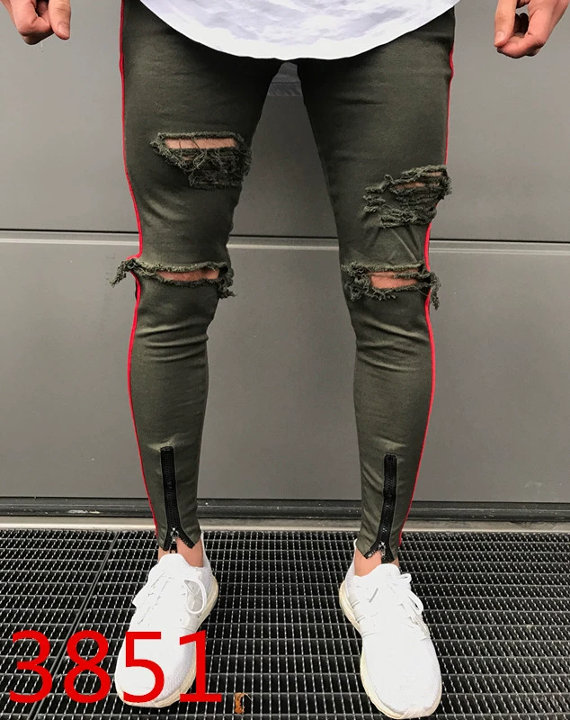 2018 High Quality The side stripe Jeans Men Brand Casual Hip Hop Ripped Jeans Homme Designer Retro Zipper Denim Pants mens