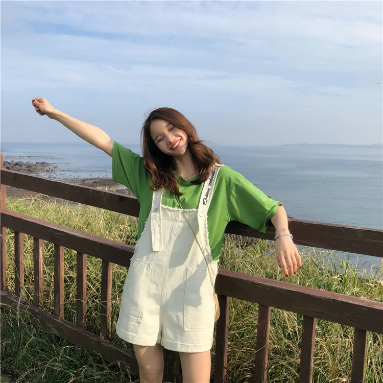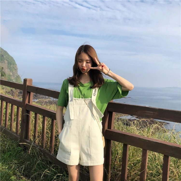 2018 Hole Pockets Womens Romper Jumpsuit Playsuit Summer Casual Solid Denim Overalls Women Fashion Loose One Piece Shorts