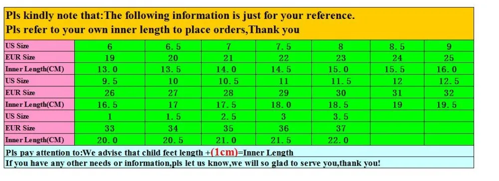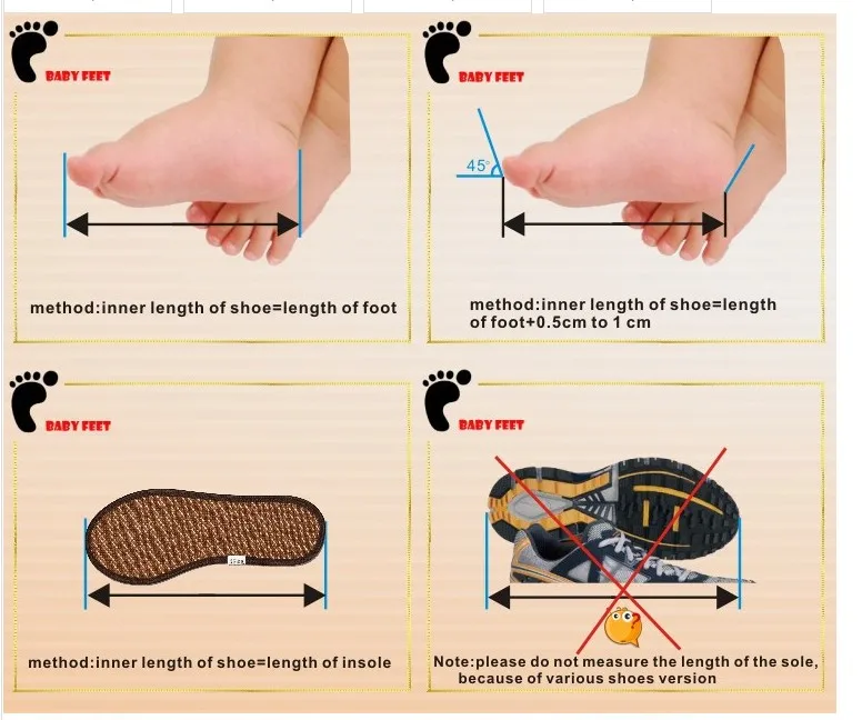 The choose size tip is:The child foot length+0.5cm~1cm=Inner length.