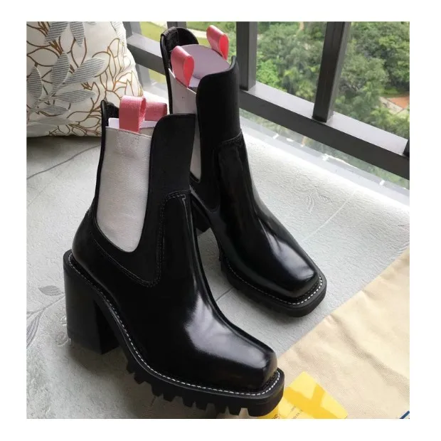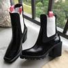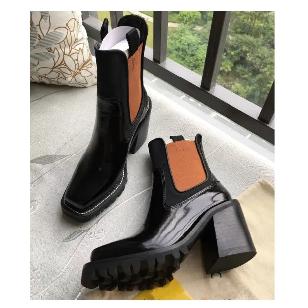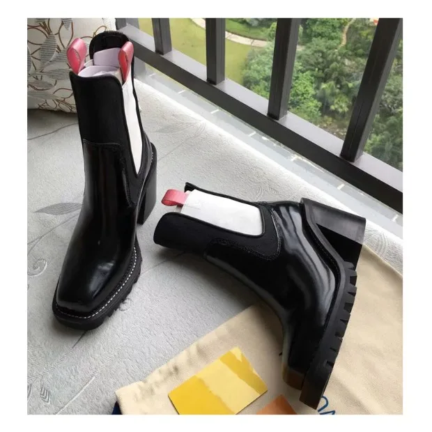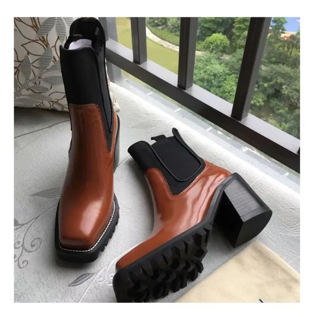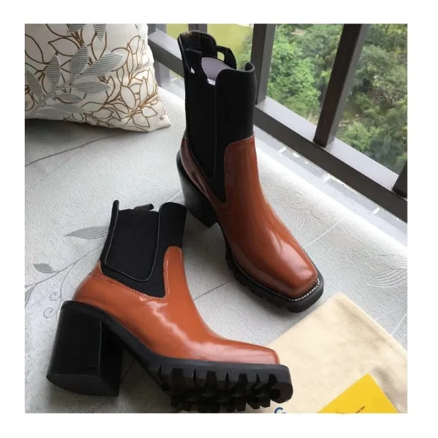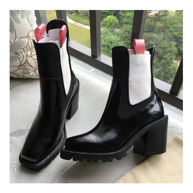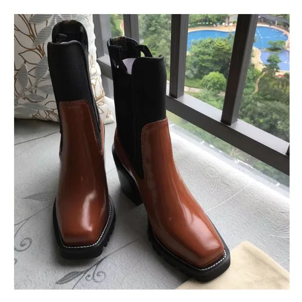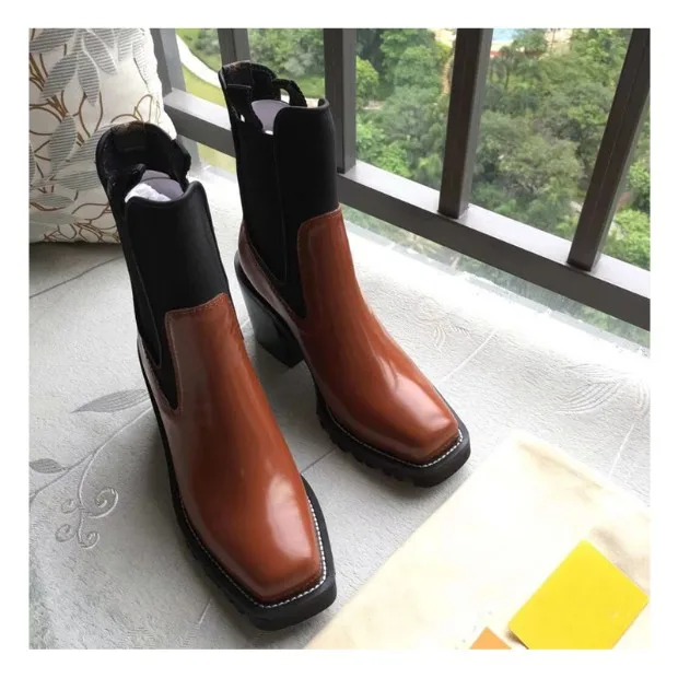 2018 Hot Autumn Winter Shoes Woman Leather Ankle Boots Square Chunky Heels Square Toe Chelsea Boots Design Woman Booties Tide