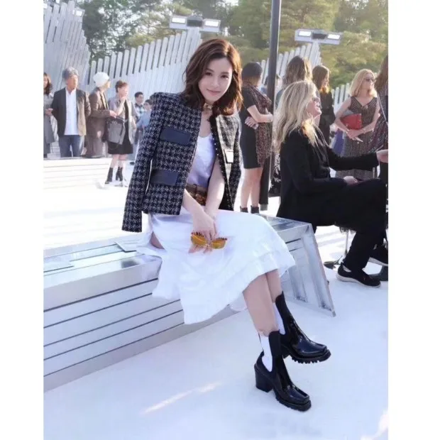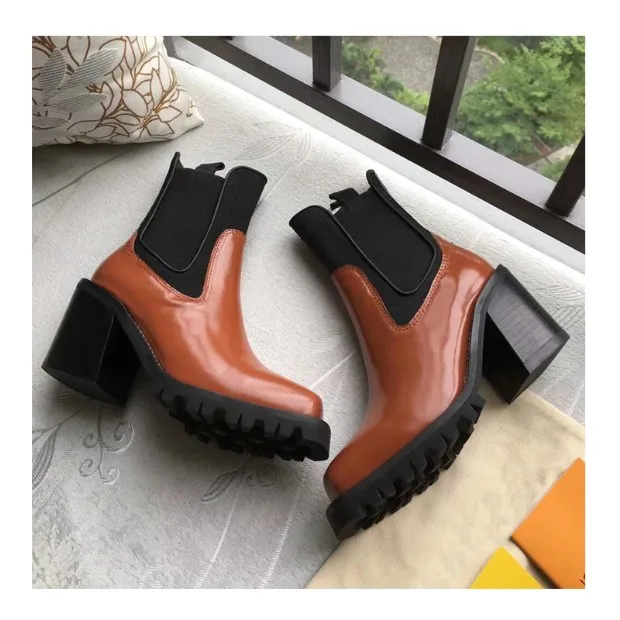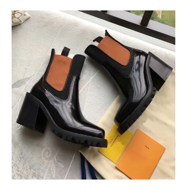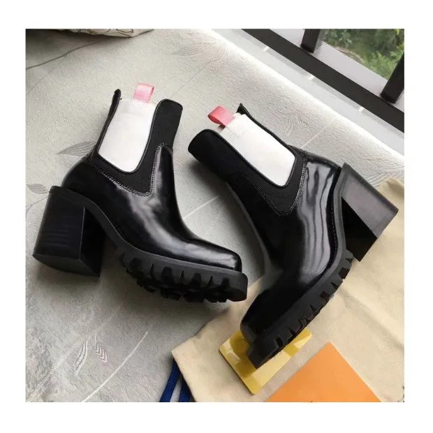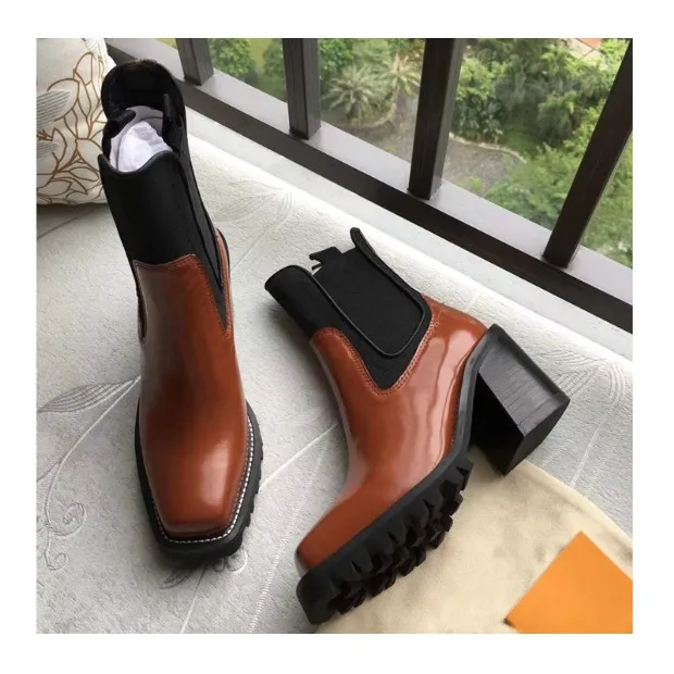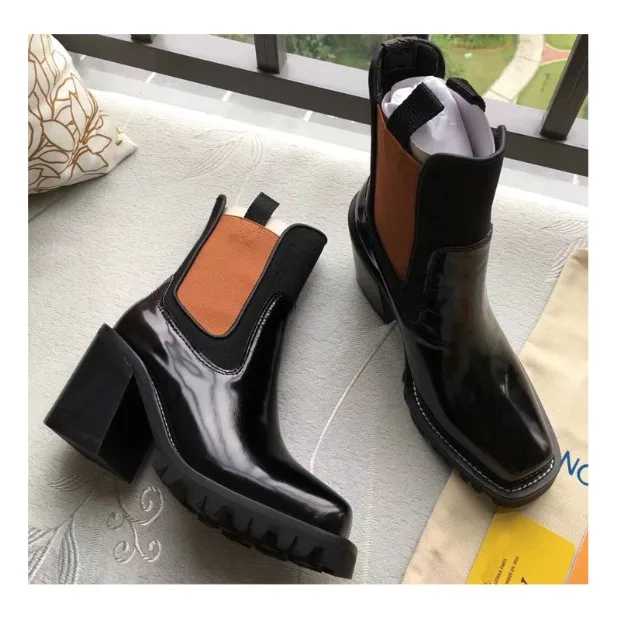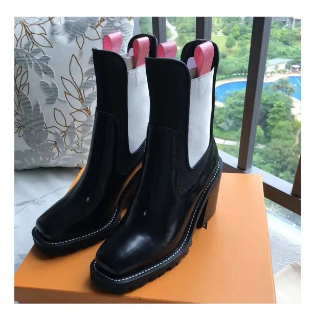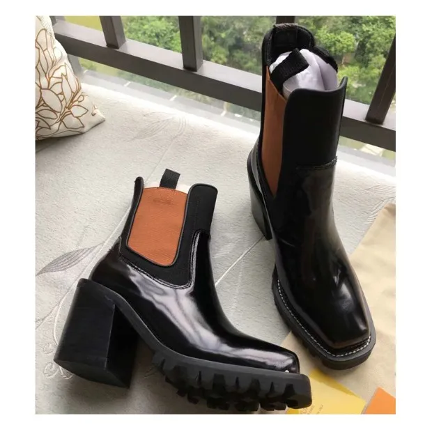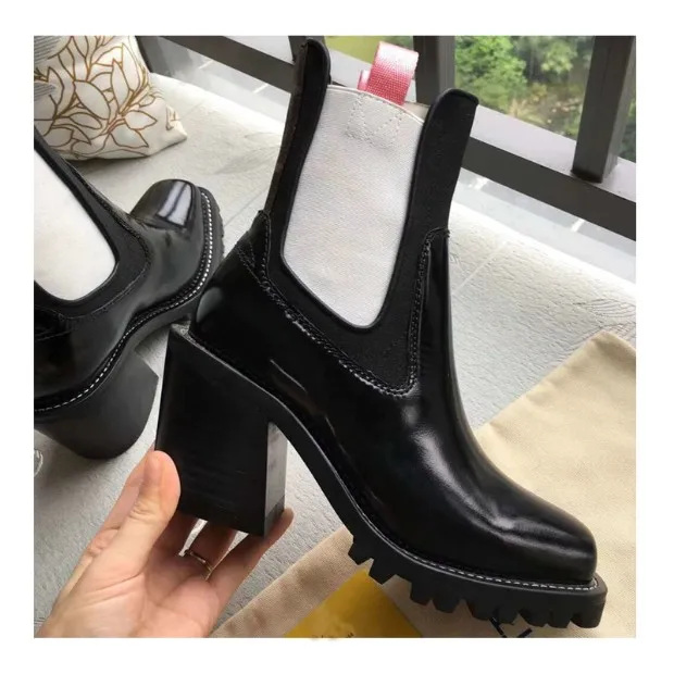 2018 Hot Autumn Winter Shoes Woman Leather Ankle Boots Square Chunky Heels Square Toe Chelsea Boots Design Woman Booties Tide