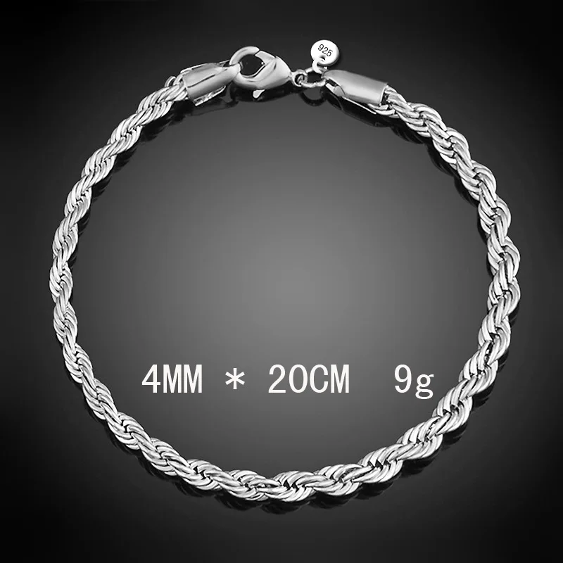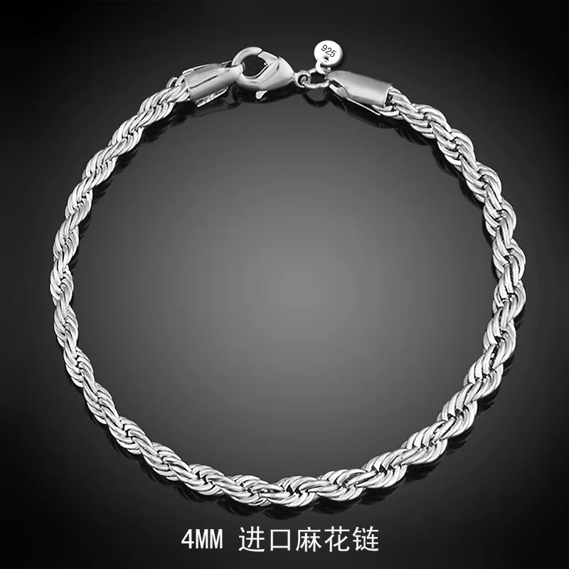 2018 Hot Fashion 925 Sterling Silver Charm Bracelets&Bangles For Women 4MM Top Quality DIY Handmade Design Jewelry Gift