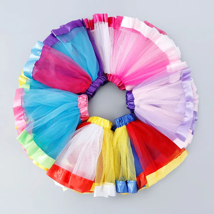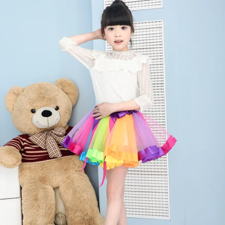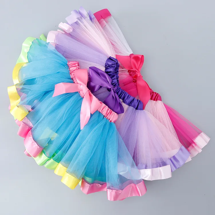 2018 hot sale children’s mesh colorful skirt girls ballet dance rainbow skirt kids stitching color tutu ball gown skirts