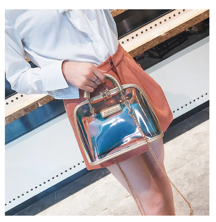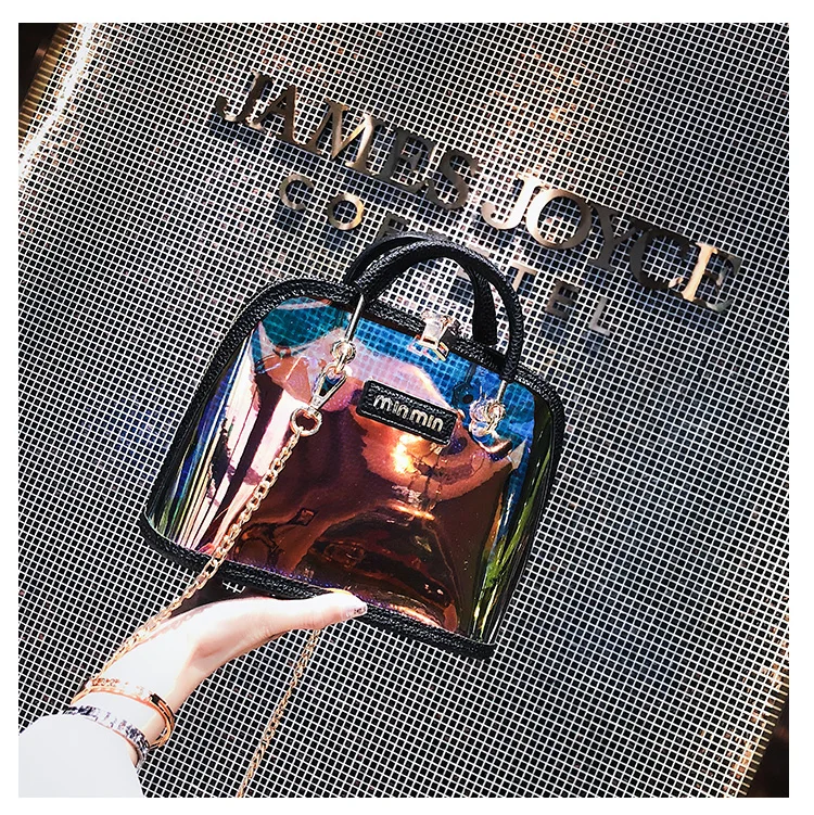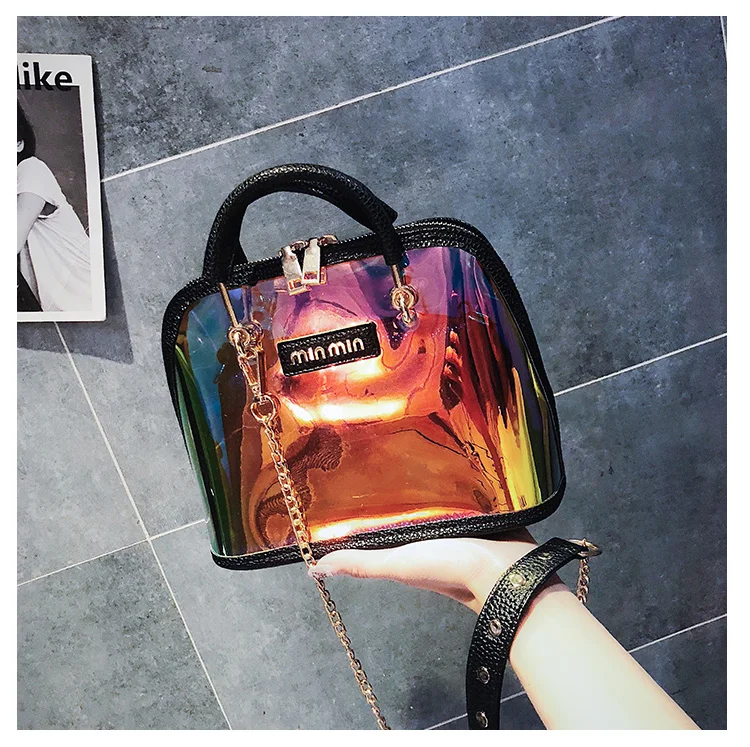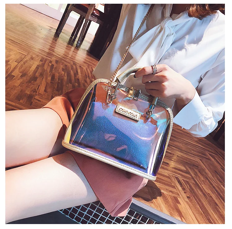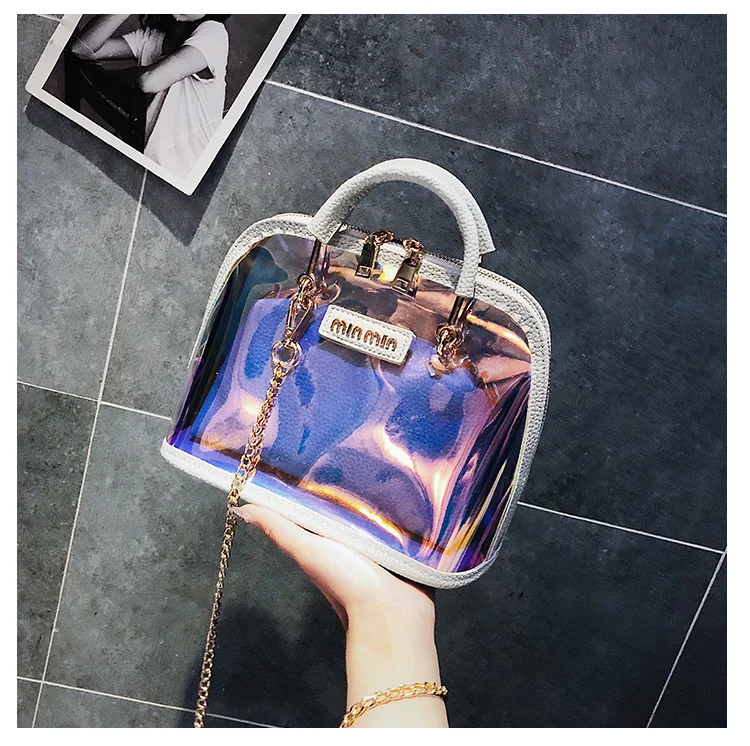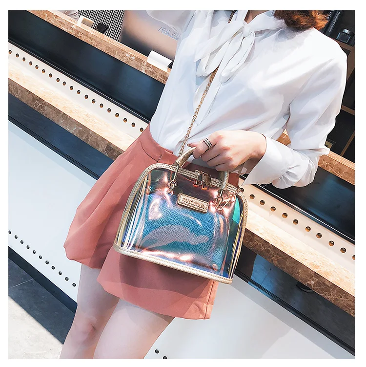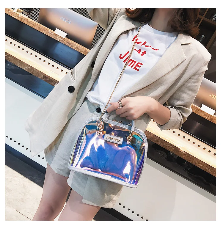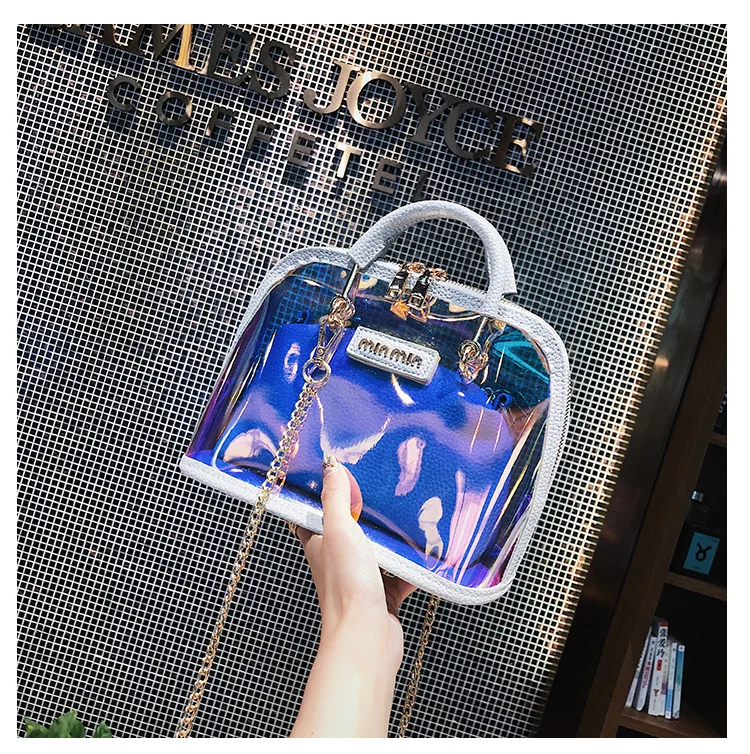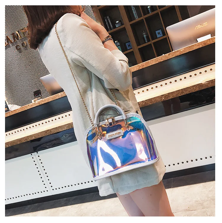 2018 HOT Sale Women Transparent Bag Clear PVC Jelly Small Shell Bag Handbag Laser Holographic Shoulder Bags Female Lady Sac