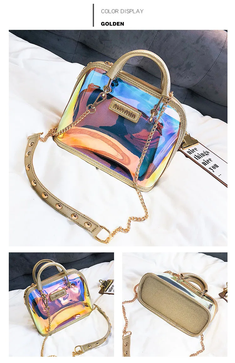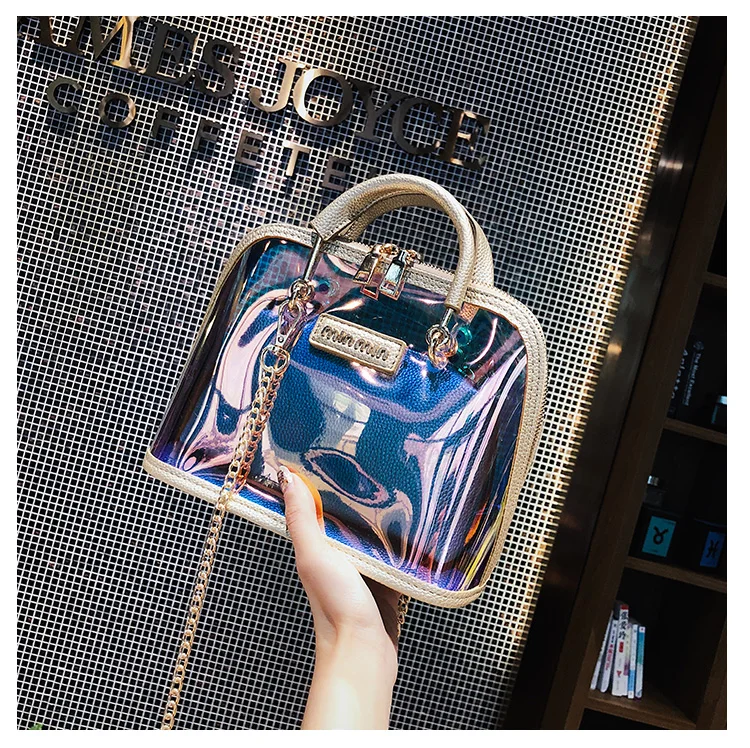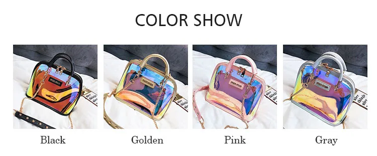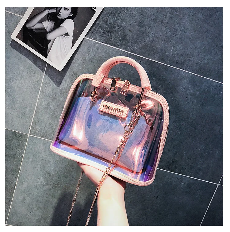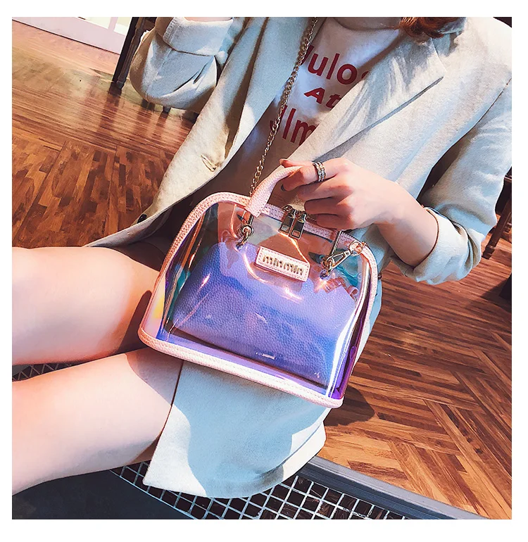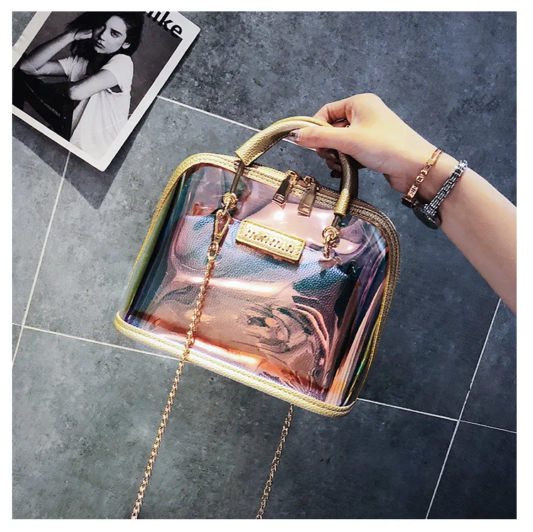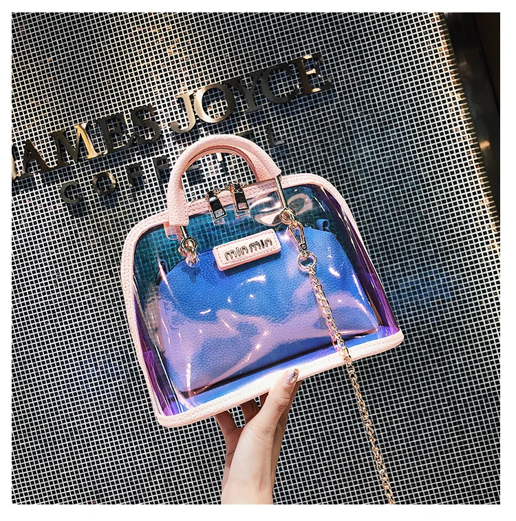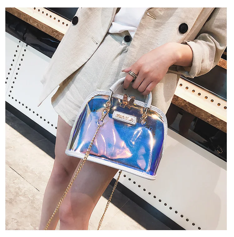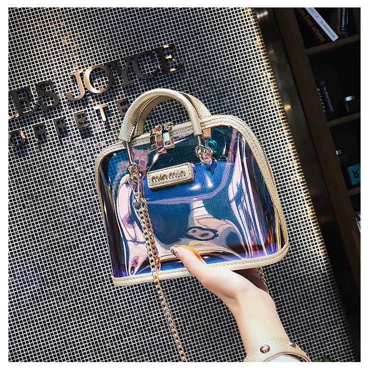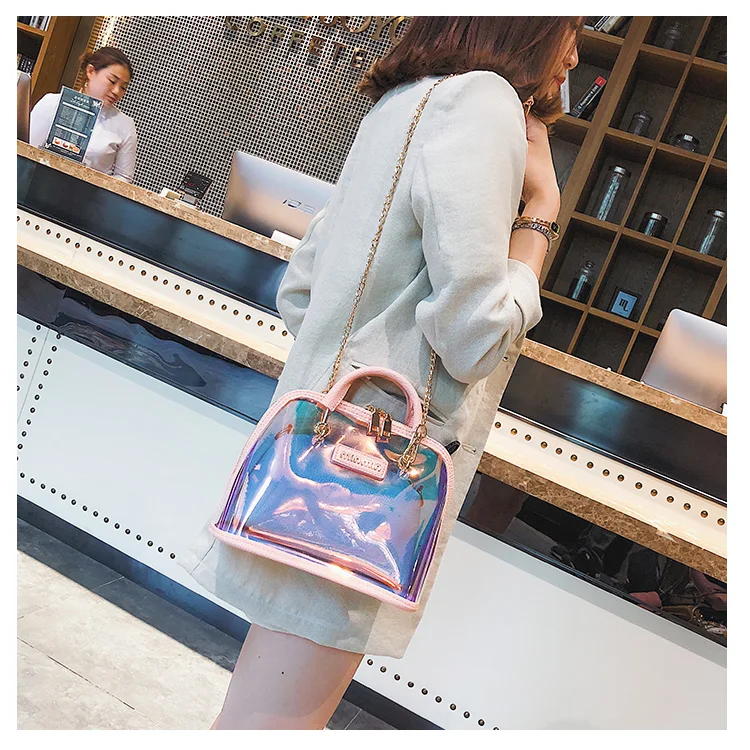 2018 HOT Sale Women Transparent Bag Clear PVC Jelly Small Shell Bag Handbag Laser Holographic Shoulder Bags Female Lady Sac