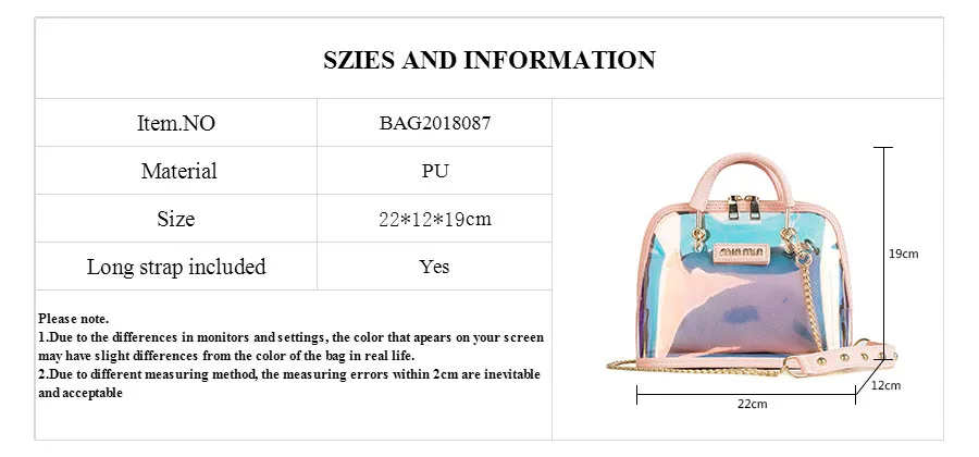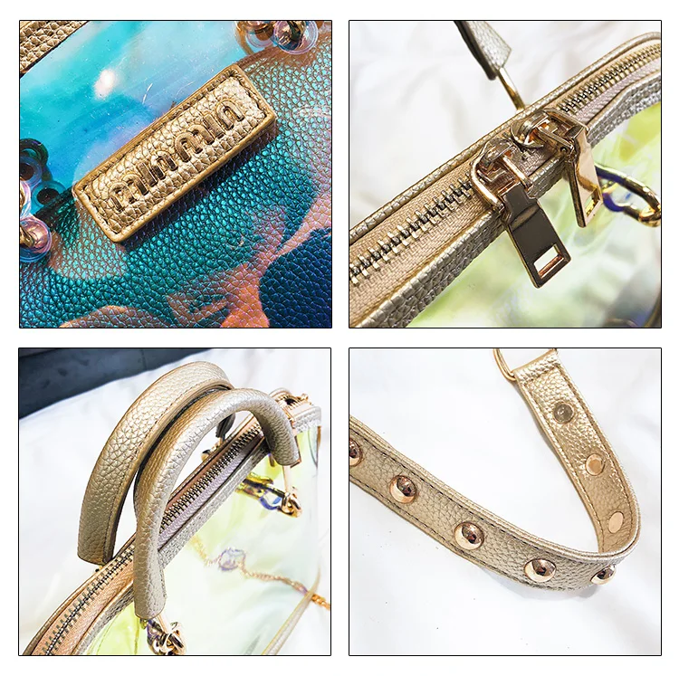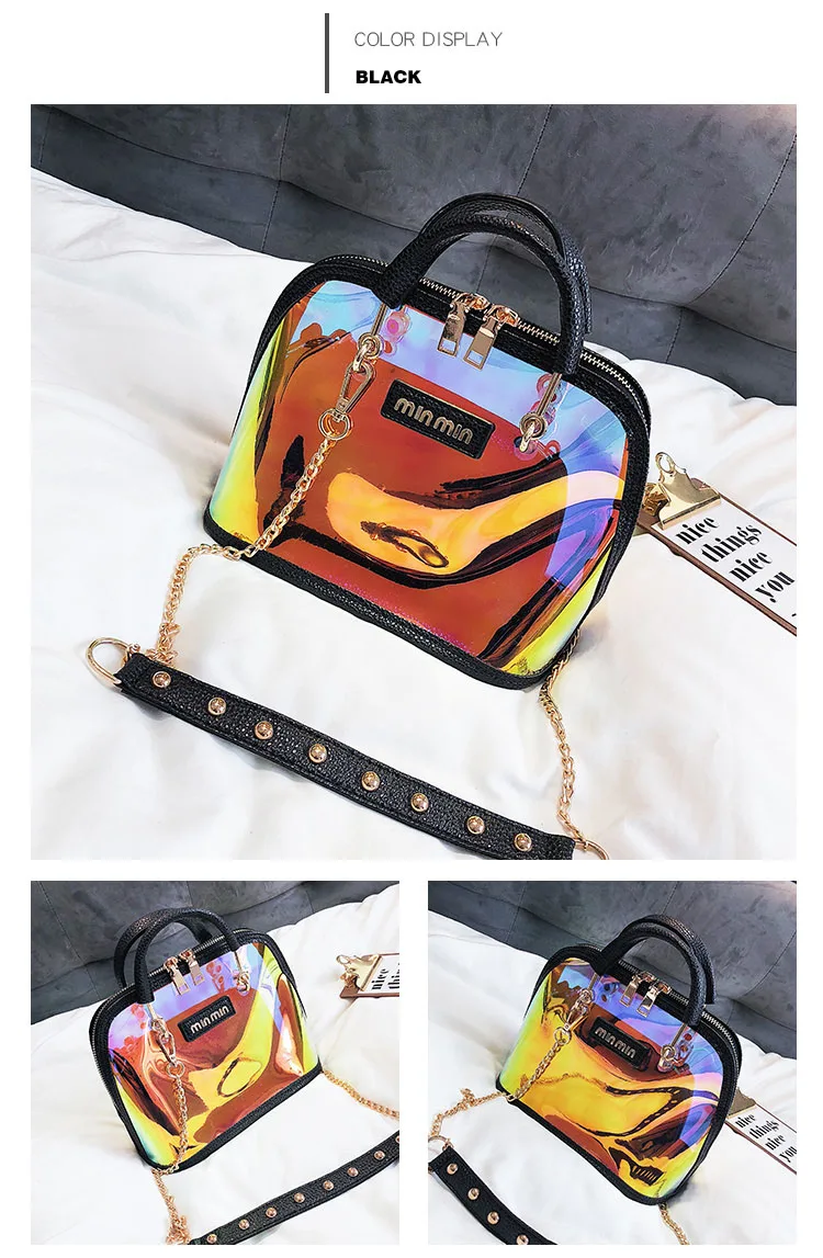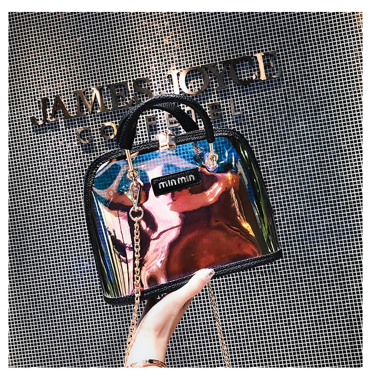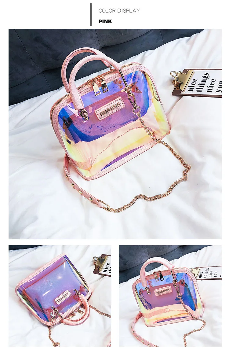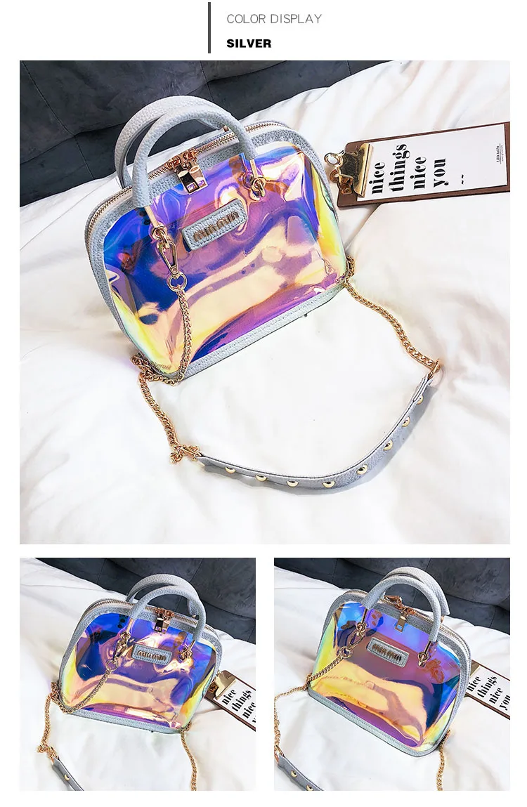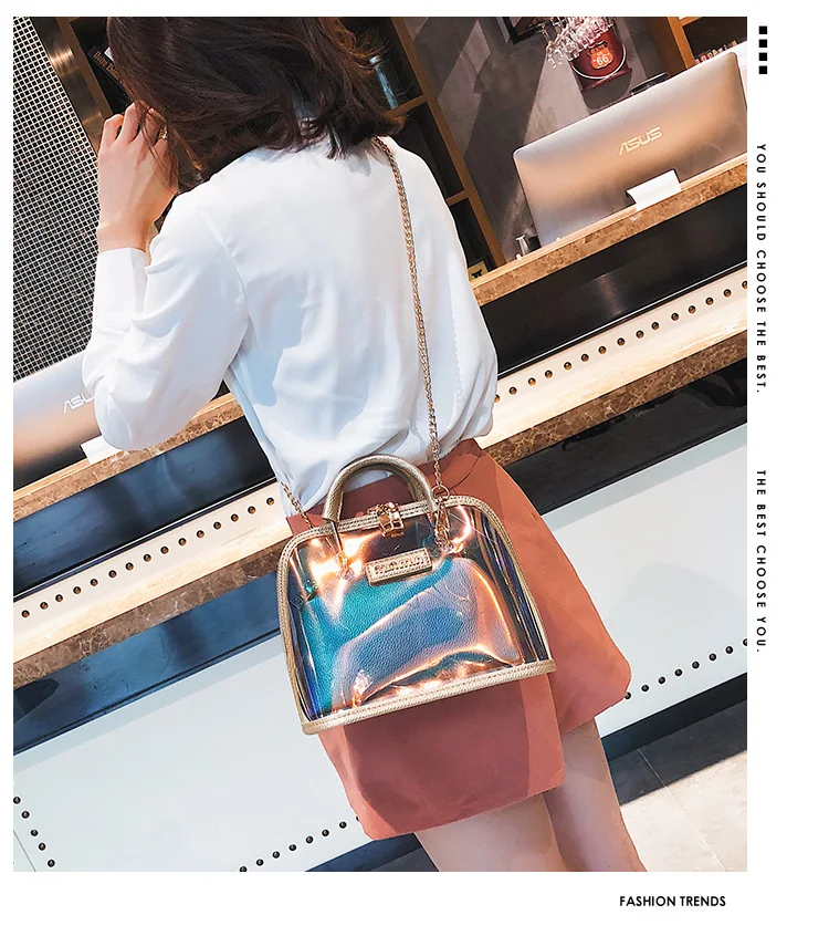 2018 HOT Sale Women Transparent Bag Clear PVC Jelly Small Shell Bag Handbag Laser Holographic Shoulder Bags Female Lady Sac