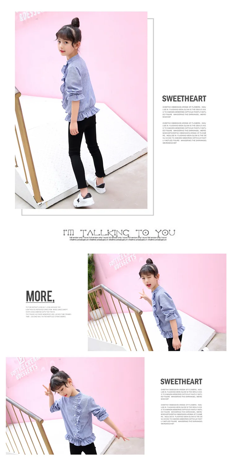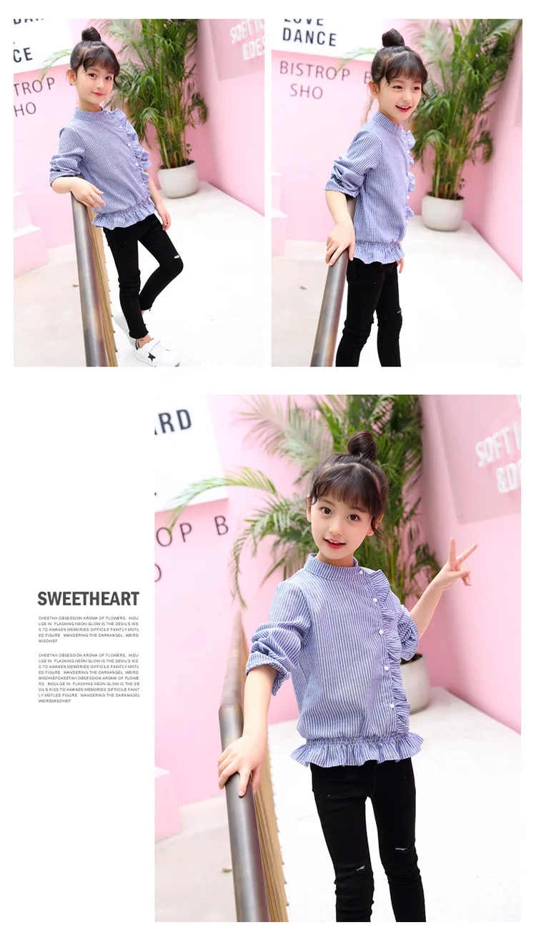 2018 in the spring and autumn season, the new sweet and fashionable girl’s striped lace long sleeved children’s shirt.