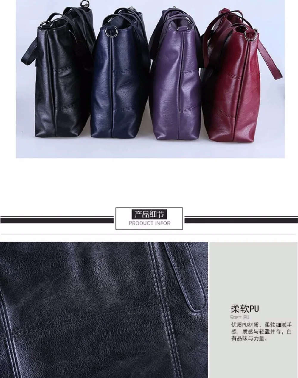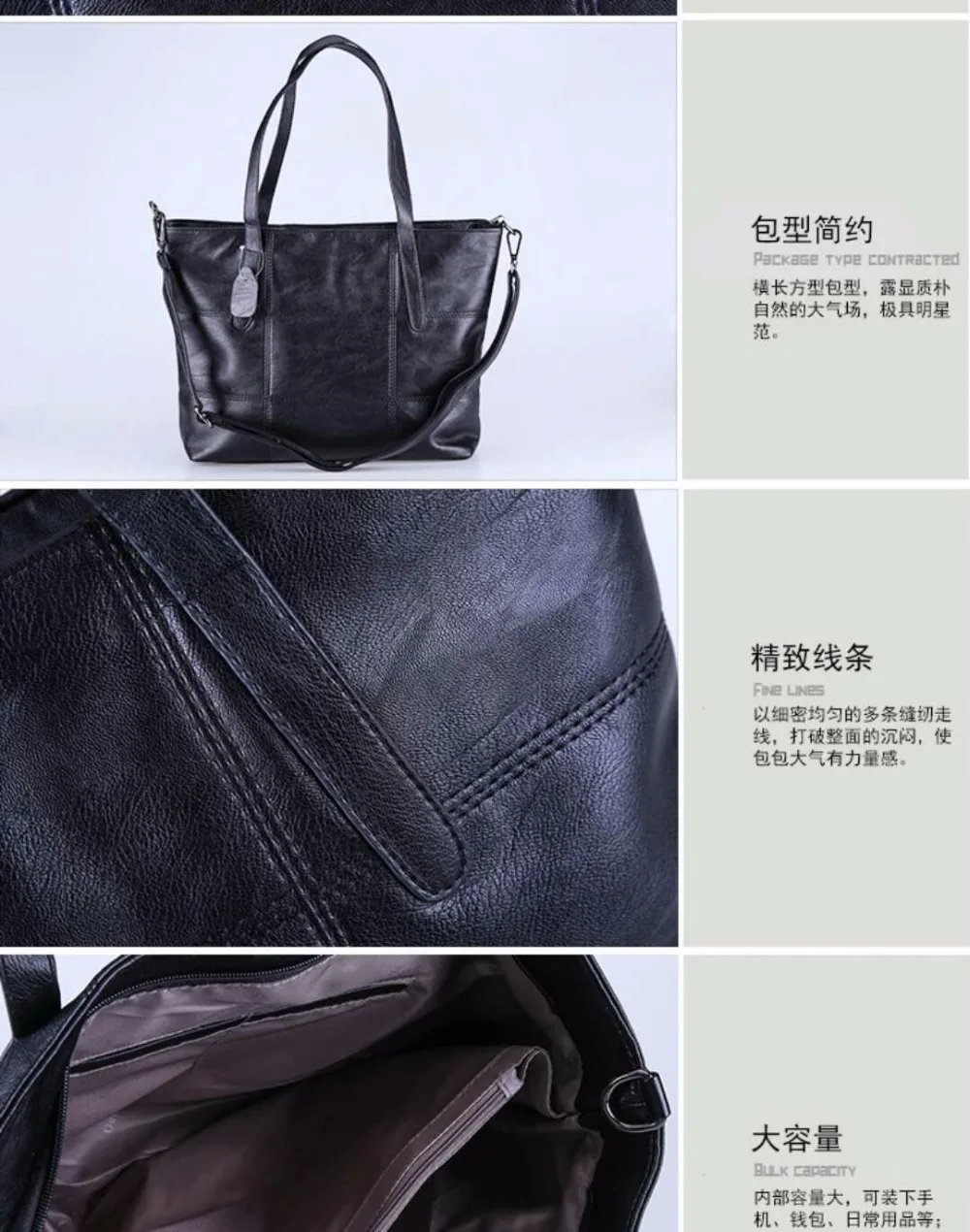 2018 Luxury Women Leather Bags Large Tote Bag Female Handbags Designer Black Leather Big Crossbody Chain Messenger Bag Girl