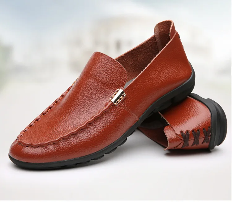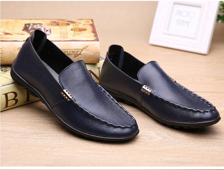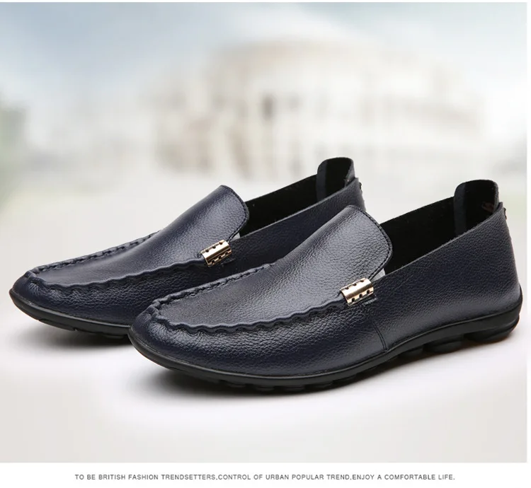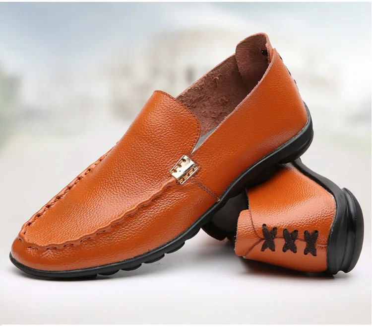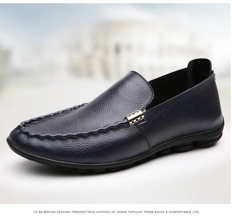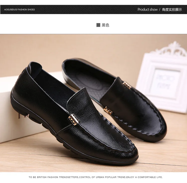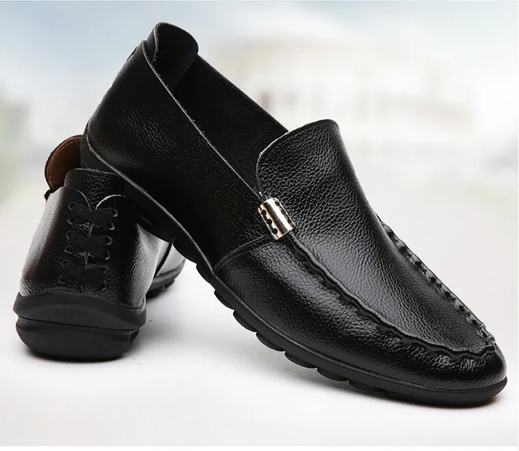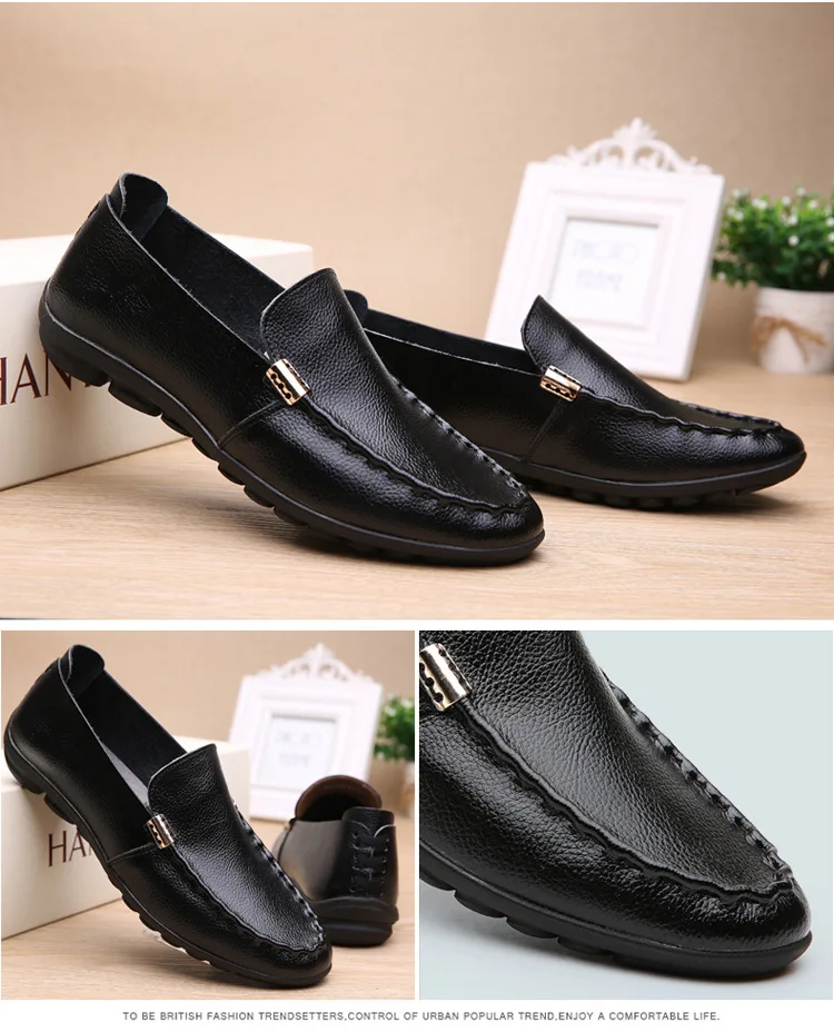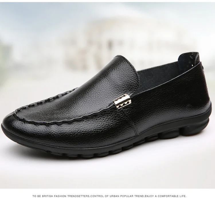 2018 Men Flat Shoes Quality Split Leather Men Loafers Solid Black Breathable Slip-On Outdoor Men Driving Shoes