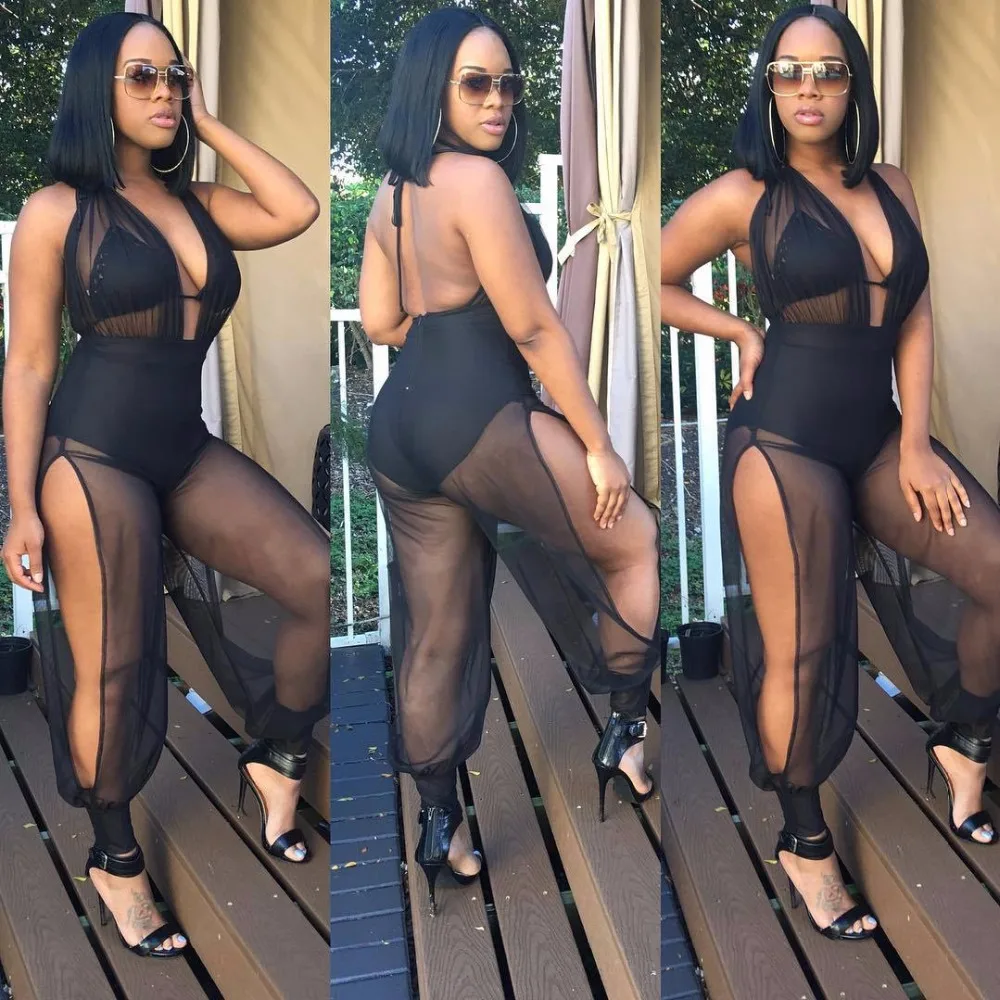 2018 Mesh perspective Backless autumn/winter Women fashion Sexy Jumpsuits casual nightclub party Jumpsuits Rompers M484