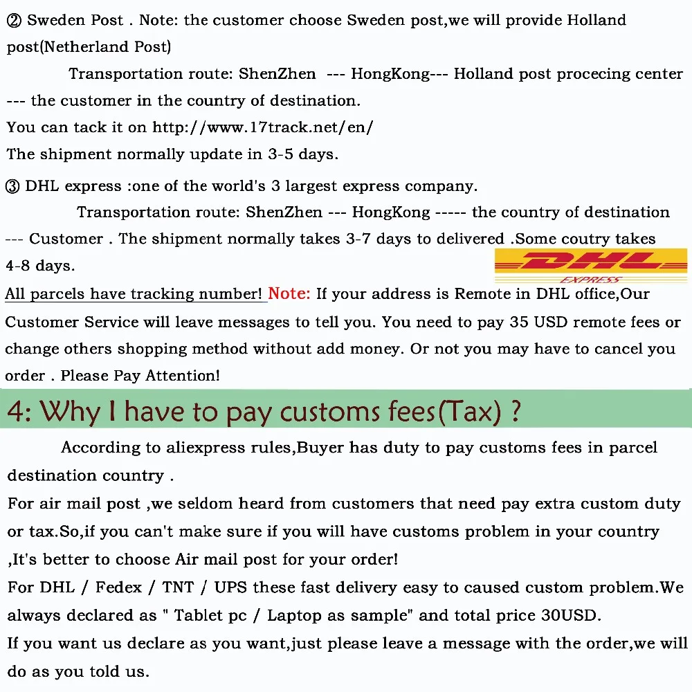 Orders dispatch within 48h. after you make the order. All items can be shipped by DHL, EMS,FedEx,Swiss Post,Singapore Post ,Sweden Post,or China Post.Important note: Items shipped by China Post reach most countries within 10 to 35 days.But to Russia it may take over 35days as for Local customs checking delay.