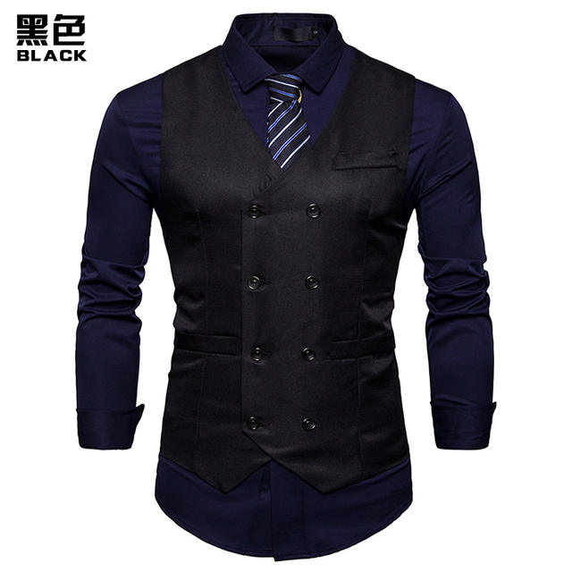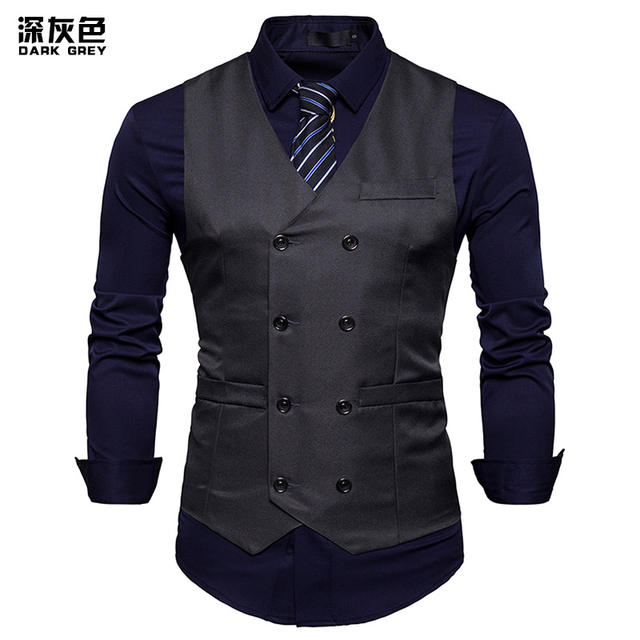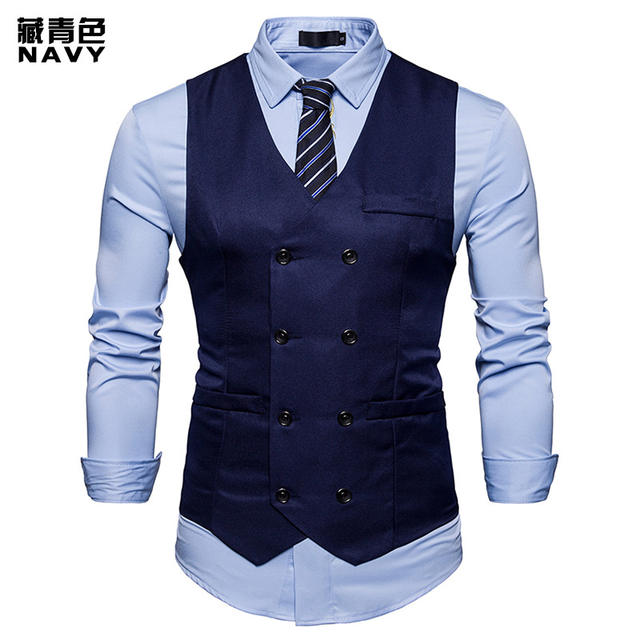 2018 New Arrival Dress Vests For Men Slim Fit Mens Suit Vest Male Waistcoat Gilet Homme Casual Sleeveless Formal Business Jacket
