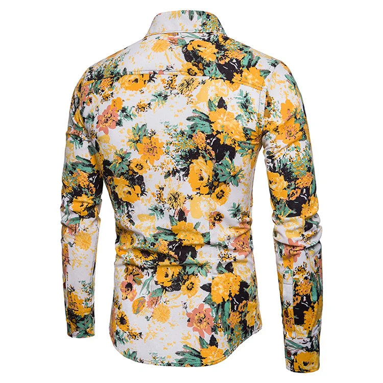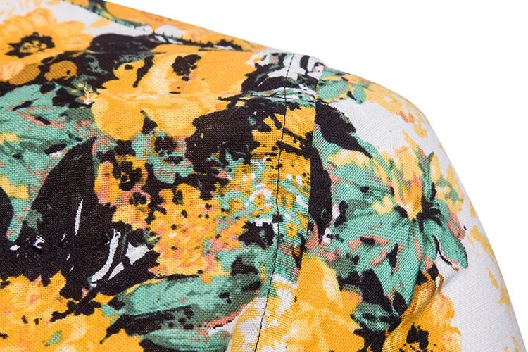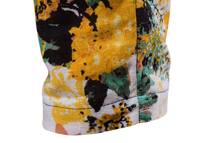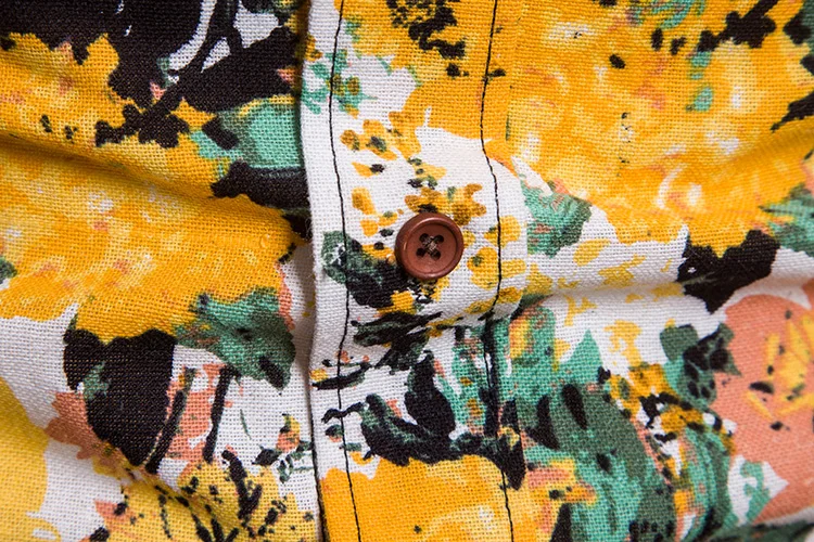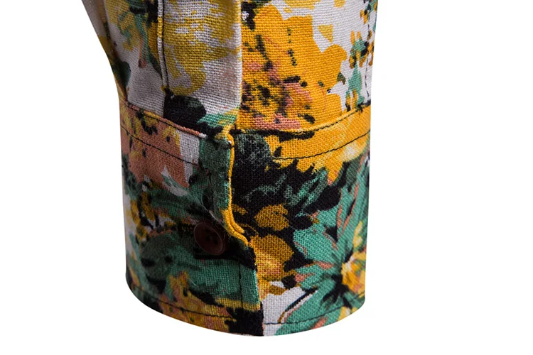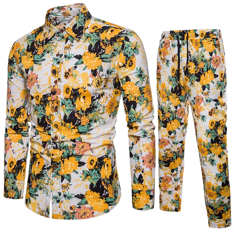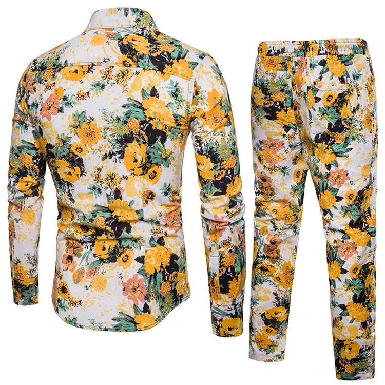 2018 New Arrival Men Shirts Set Top + Pants Cotton And Linen Casual Shirt Suits Single Breasted Yellow Floral Printed Large Size