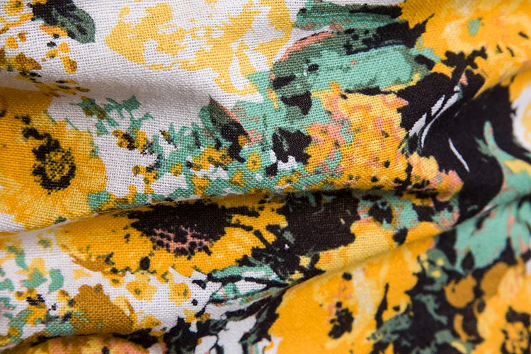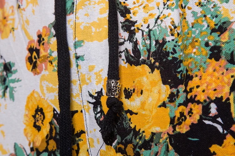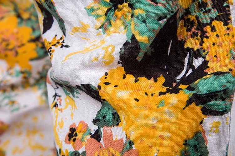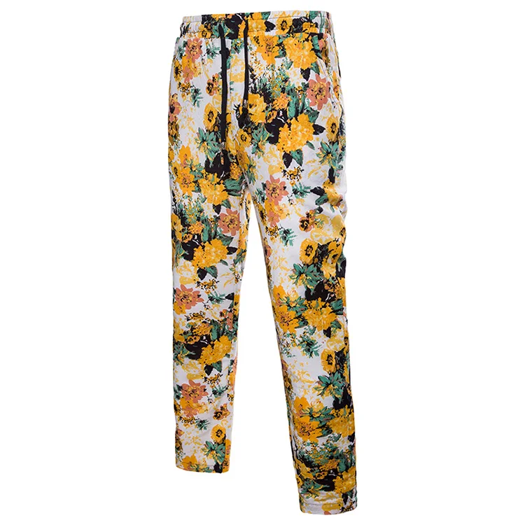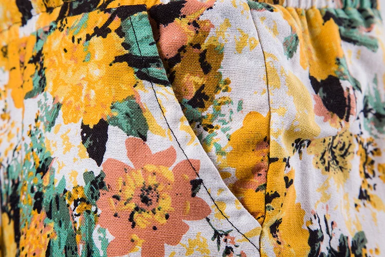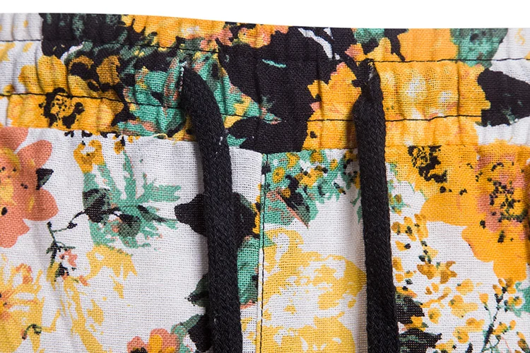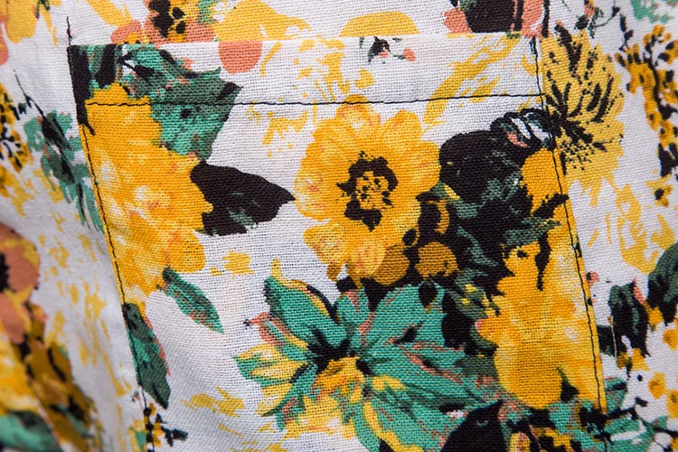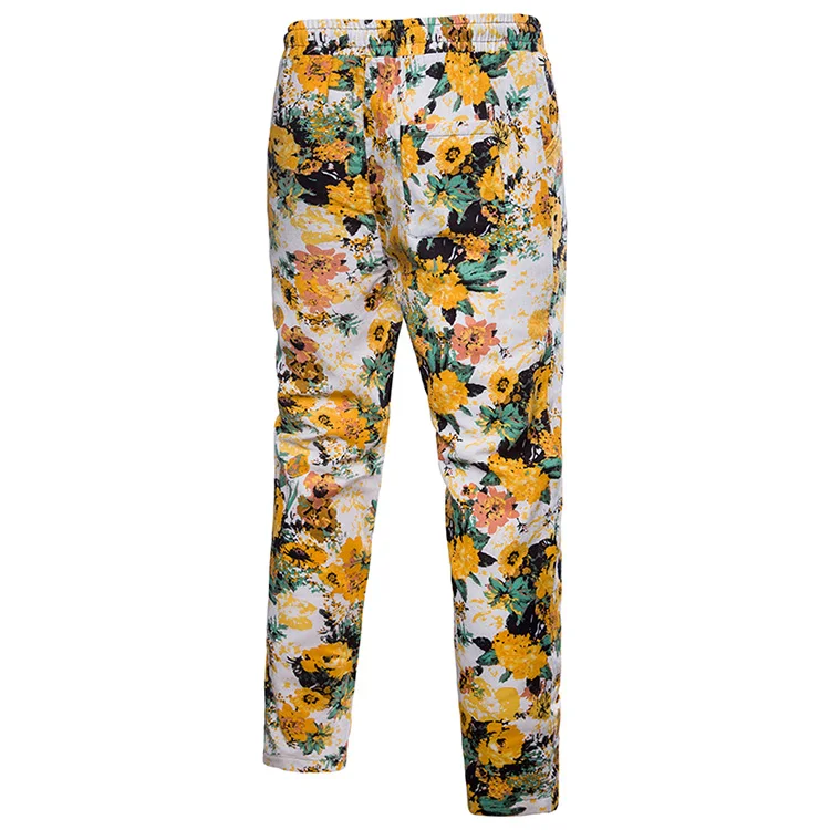 2018 New Arrival Men Shirts Set Top + Pants Cotton And Linen Casual Shirt Suits Single Breasted Yellow Floral Printed Large Size