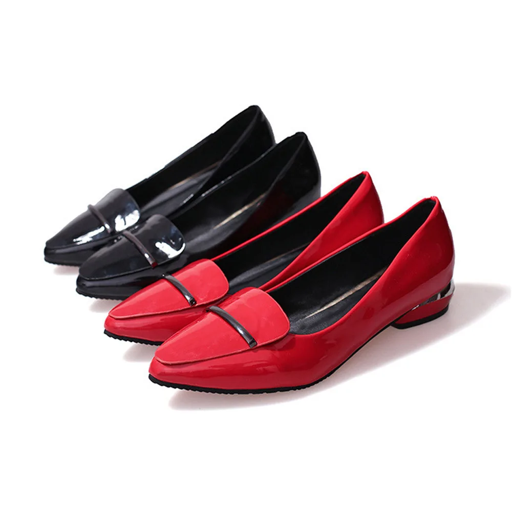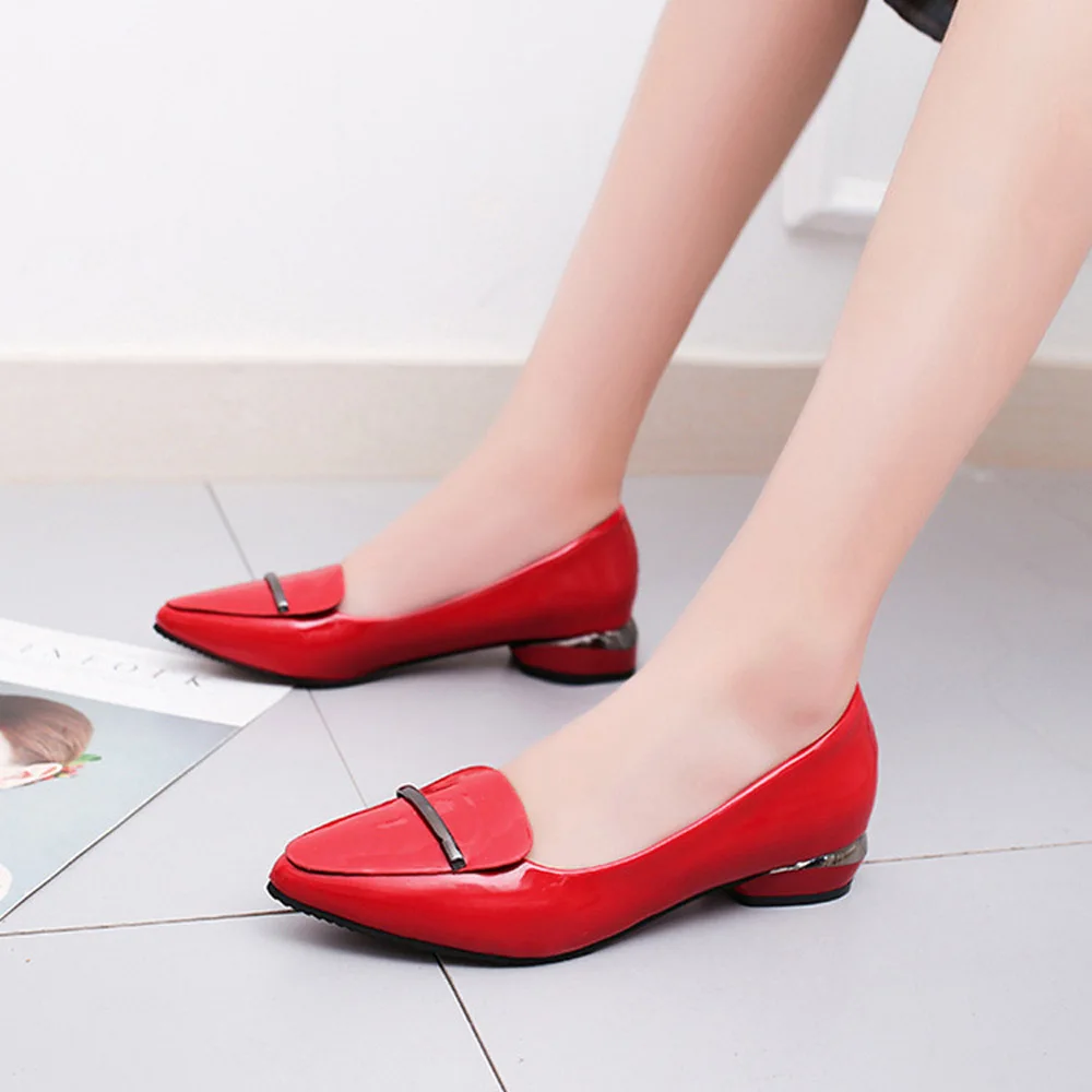 2018 New Arrival Shoes Woman Fashion Slip-On Pointed Toe Low Heel Pumps For Women Office Lady PU Leather Women Shoes Grapara