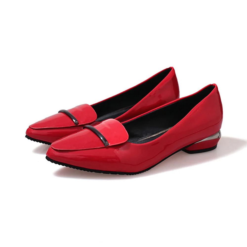 2018 New Arrival Shoes Woman Fashion Slip-On Pointed Toe Low Heel Pumps For Women Office Lady PU Leather Women Shoes Grapara