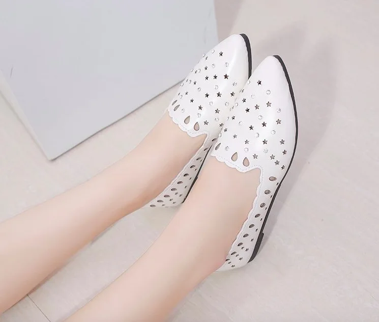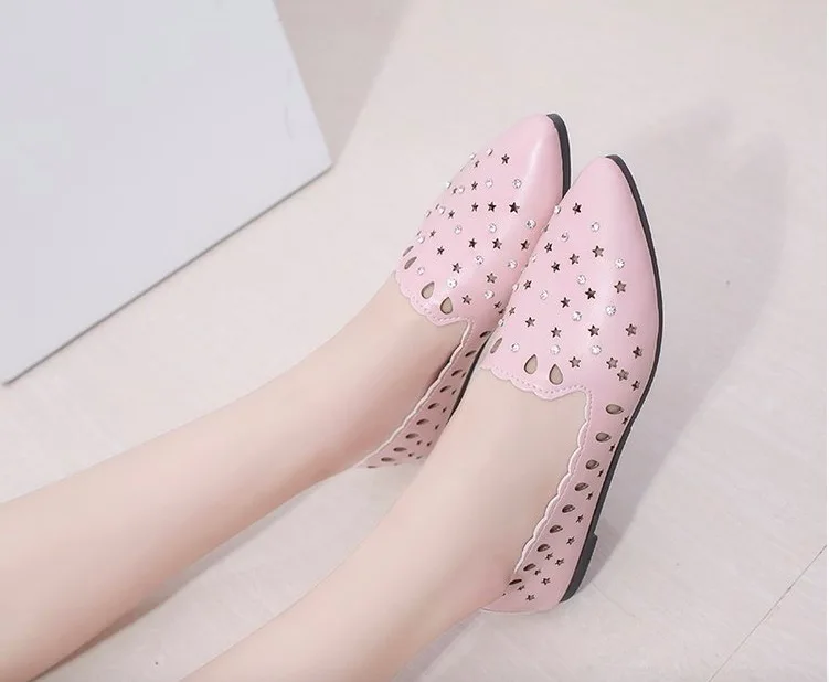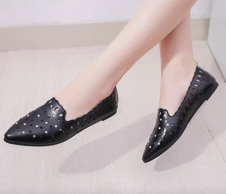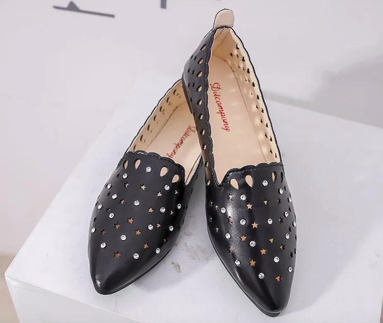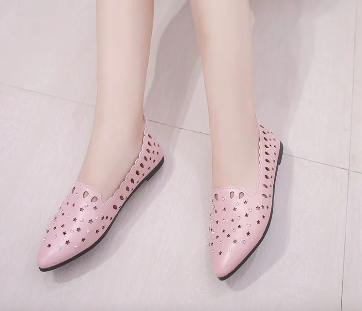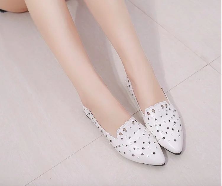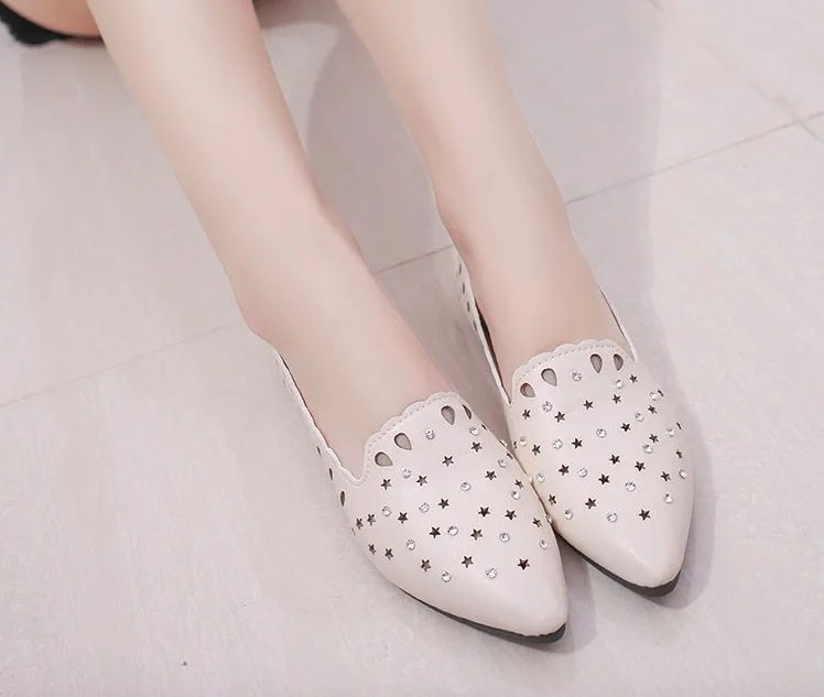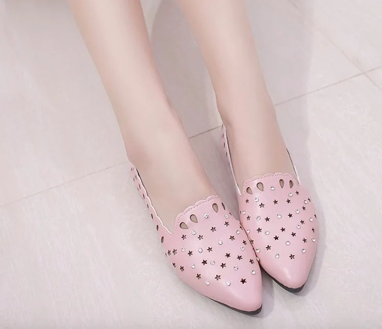 2018 New Arrival Women Flats Shoes Shallow Crystal Flat Heel Hollow Out Star Shape Nude Shoes Pointed-toe Shoes zapatos mujer