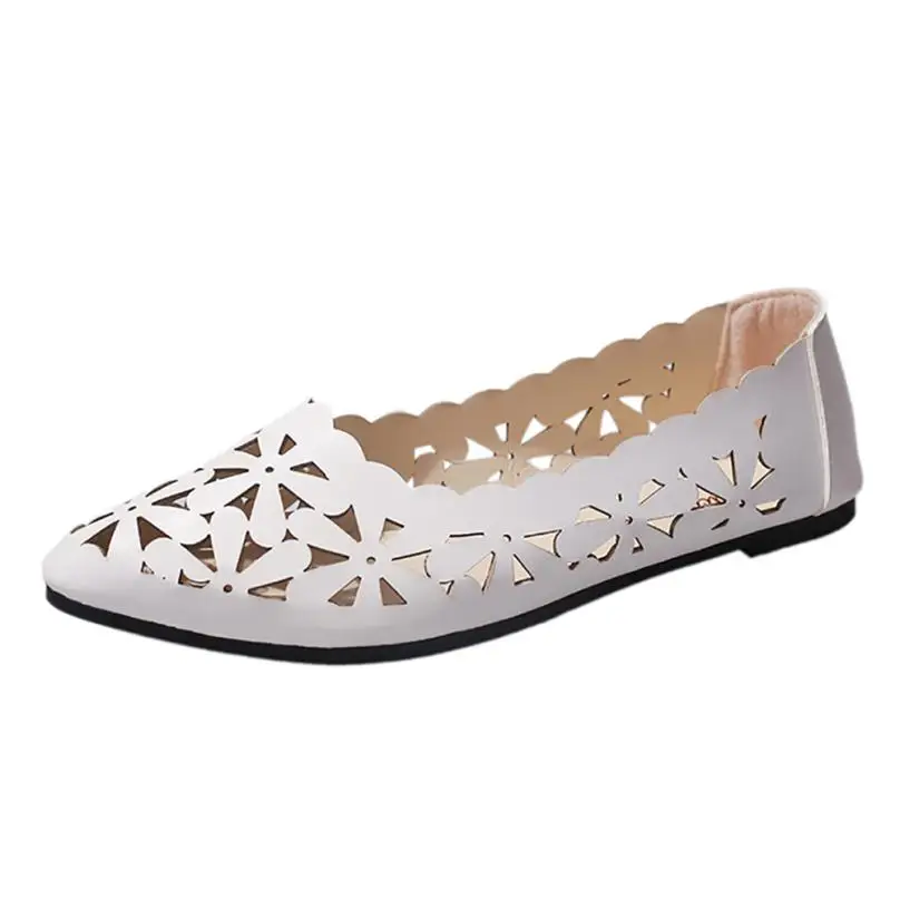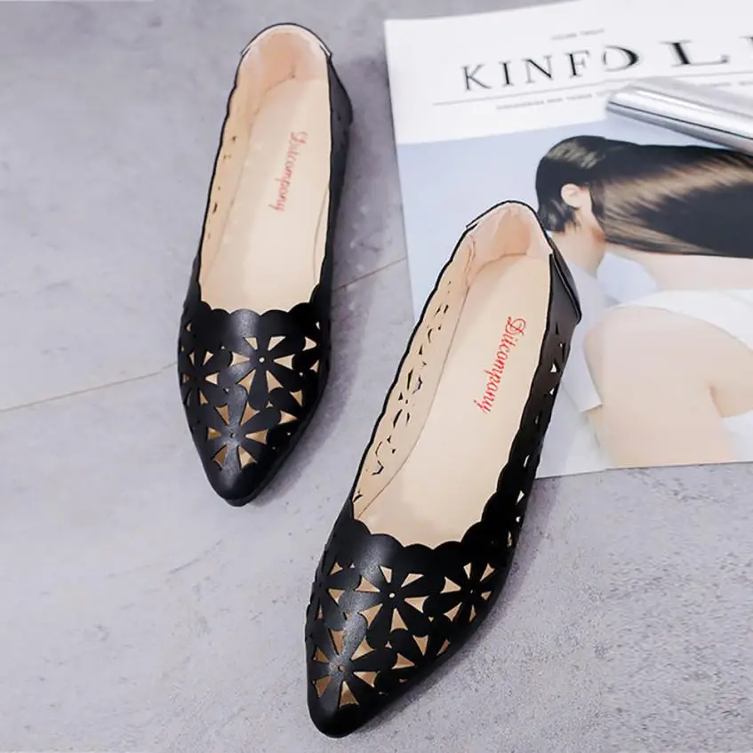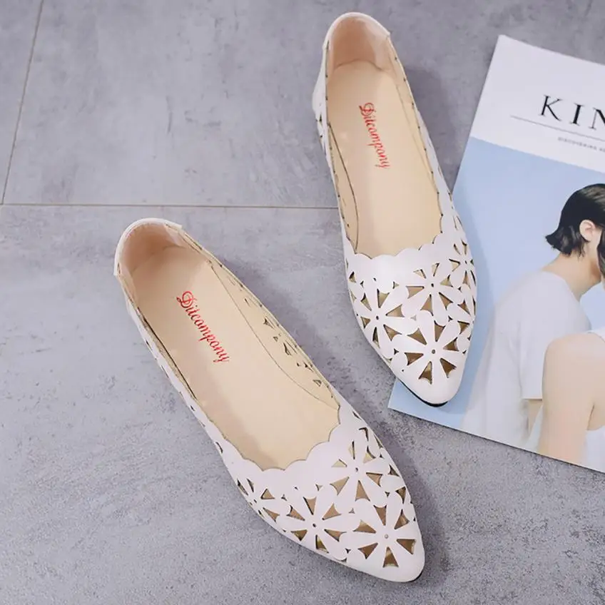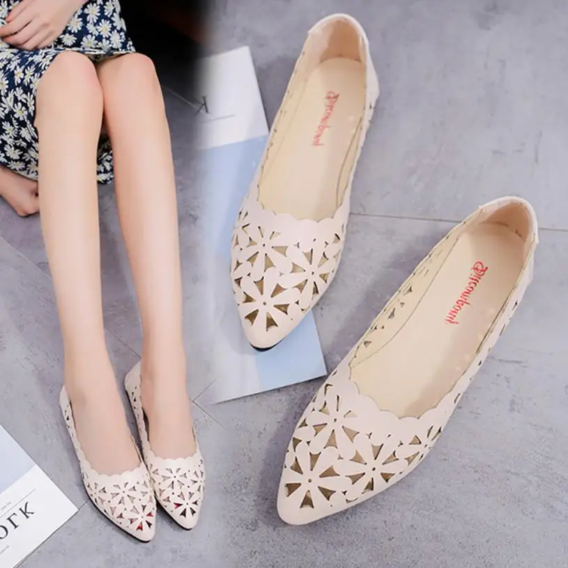2018 New Arrival Women Flats Shoes Shallow Flat Heel Hollow Out Flower Shape Nude Shoes Pointed-toe Shoes zapatos mujer