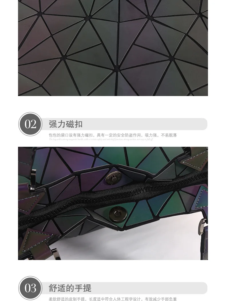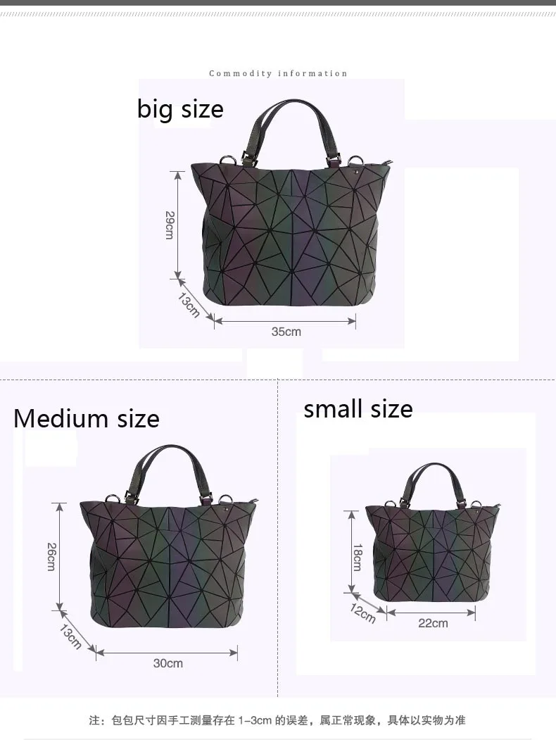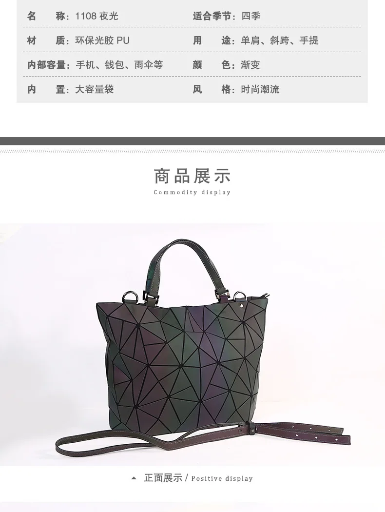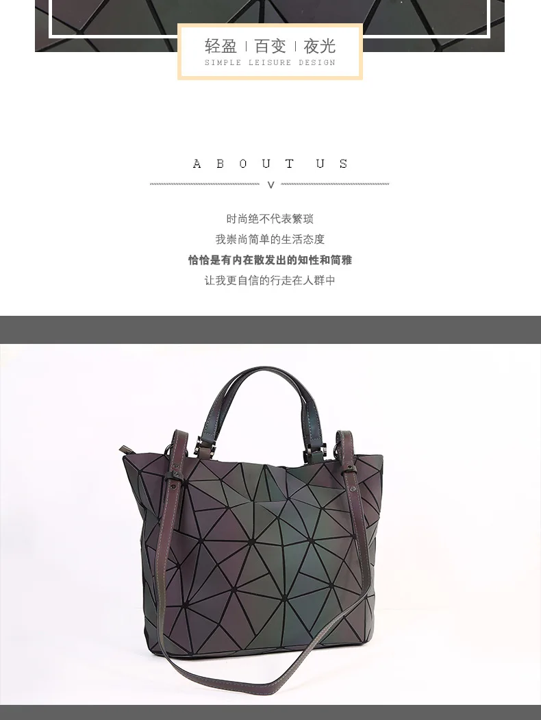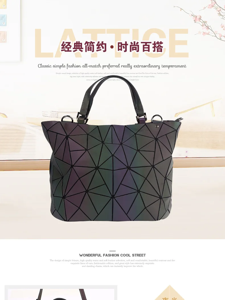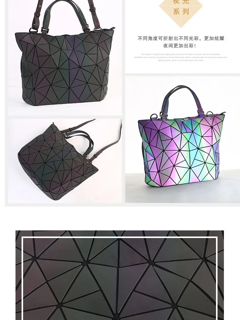 2018 bag Women Luminous sac Bag Diamond Tote Geometry Quilted Shoulder Bags Laser Plain Folding Handbags bolso