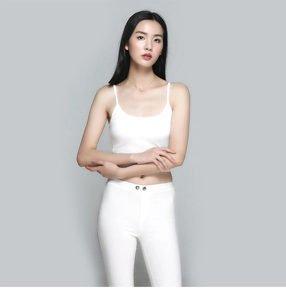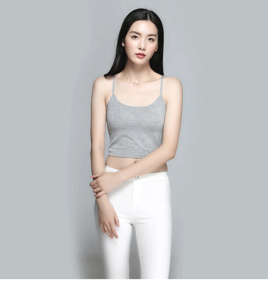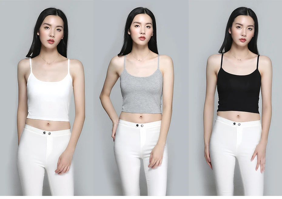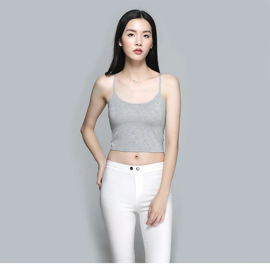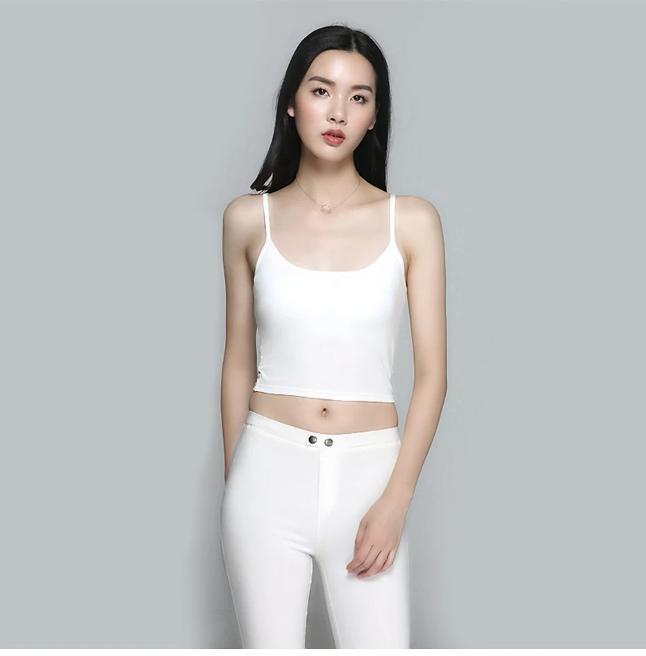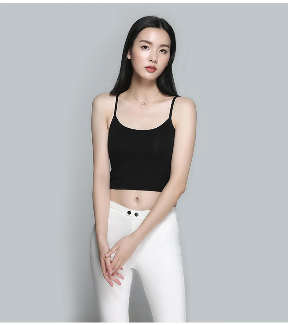2018 New Basic Crop Top With Chest Pad Modal Elastic Shirt Vest Camisole Female T-shirt Top Women